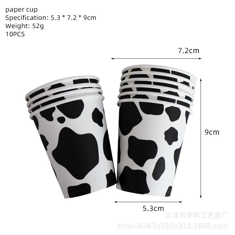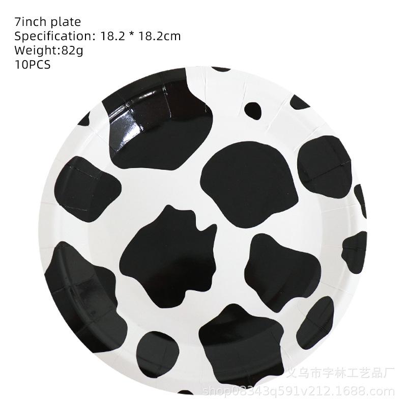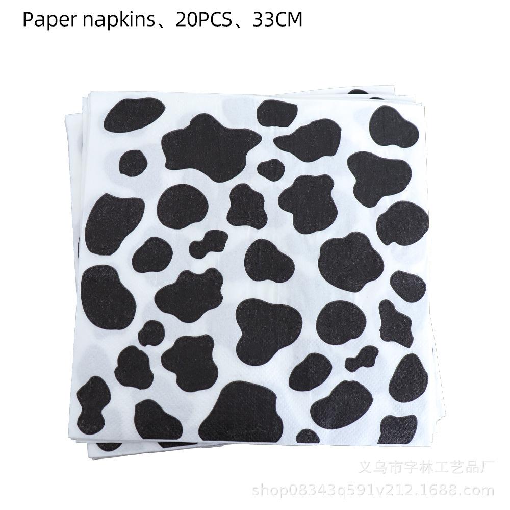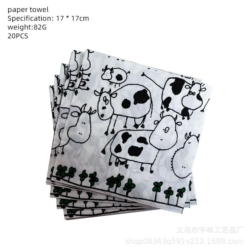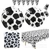 Talheres para festa com estampa de vaca preta e branca, prato de papel, toalha de papel, toalha de mesa, presente para bebê, decoração temática de animais de fazenda