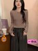 Outono e inverno forrado com lã espessada quente gola redonda base interna camisa alta qualidade slim-fit manga comprida suéter feminino de malha