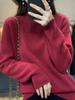 Meia gola alta engrossada simples feminina 100 lã base solta casual outono e inverno novo pulôver suéter de malha preguiçoso