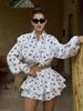 Conjunto de shorts de manga comprida com impressão transfronteiriça Europa e Estados Unidos 2025 primavera novo design babados cardigan shorts conjunto de duas peças