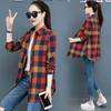 Primavera Nova Camisa Xadrez Feminina Camisa de Comprimento Médio Manga Comprida Cardigan Solto All-match Top Trespassado