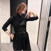 Blusa de malha de algodão puro feminina, outono e inverno, gola redonda solta, gola alta, base simples, cor sólida, manga comprida, top fashion para todos os gostos