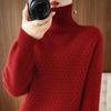 2022 outono e inverno novo suéter de gola alta feminino quente pele-amigável solto lã base camisa favo de mel suéter grosso