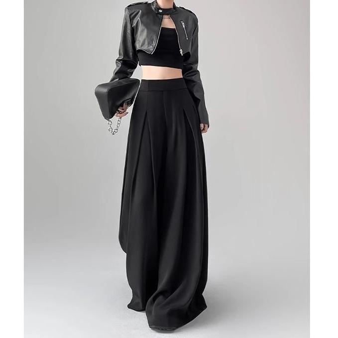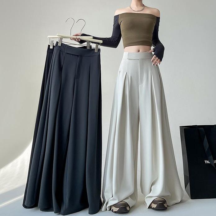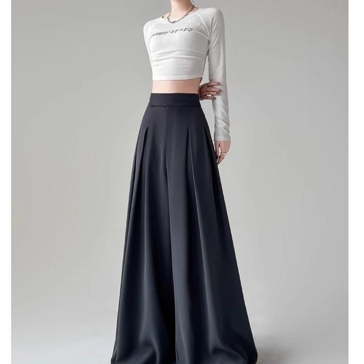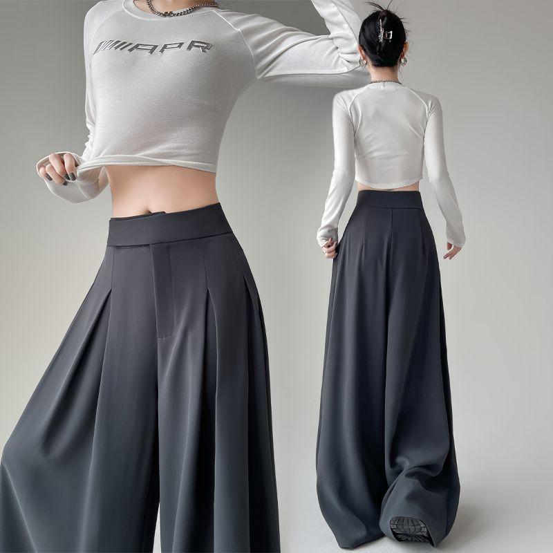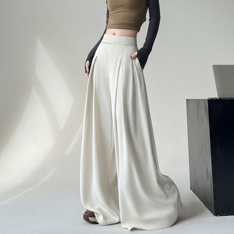 Calças de terno de alta qualidade femininas primavera novas calças soltas all-match emagrecimento cintura alta mergulhadas perna larga saia casual