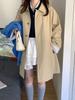 Sobretudo Corta-vento Cáqui para Mulheres Outono 2025 Novo Estilo Coreano Solto Emagrecedor Versátil Abotoamento Simples Lapela