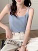 Camisola de Seda Gelo para Mulheres 2025 Verão Ajuste Slim Roupa Exterior Roupa Interior Design Versátil Camiseta Básica Top