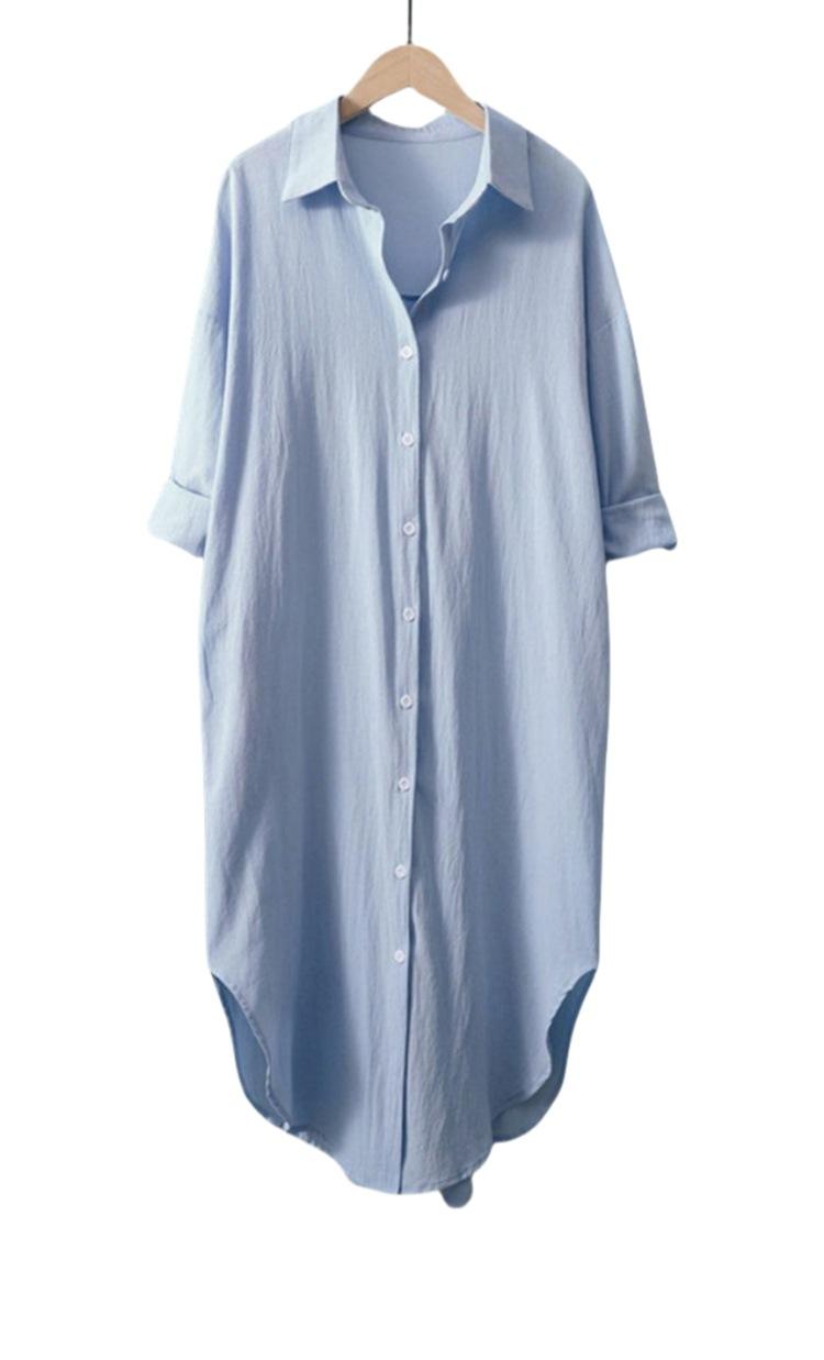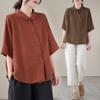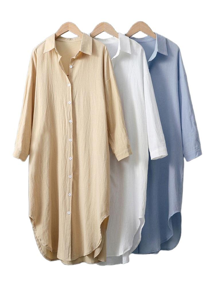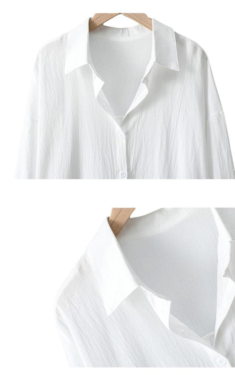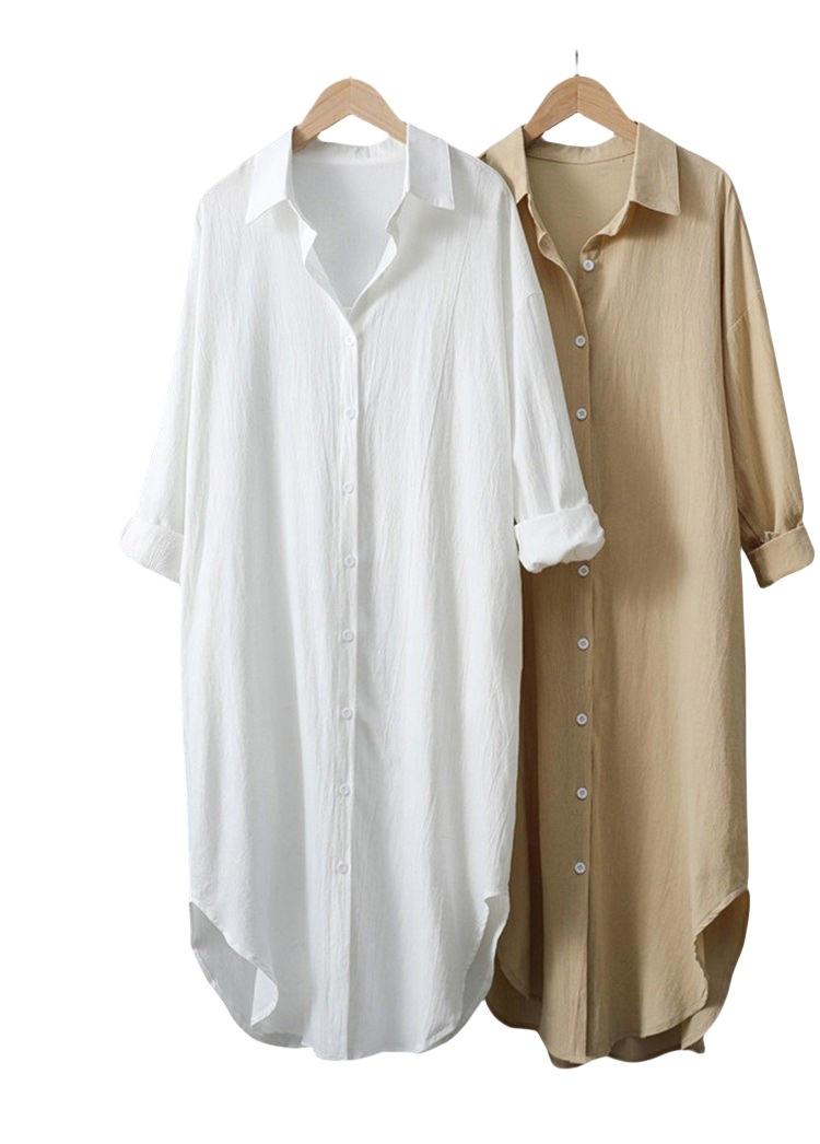 2025 Nova Camisa de Verão de Comprimento Médio Feminina Camisa de Algodão e Linho Saia Design Solto Top Versátil Jaqueta Camisa de Proteção Solar