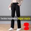Terno feminino plus size cintura alta micro-calças 2024 primavera e outono fino emagrecimento all-match confortável casual calças largas