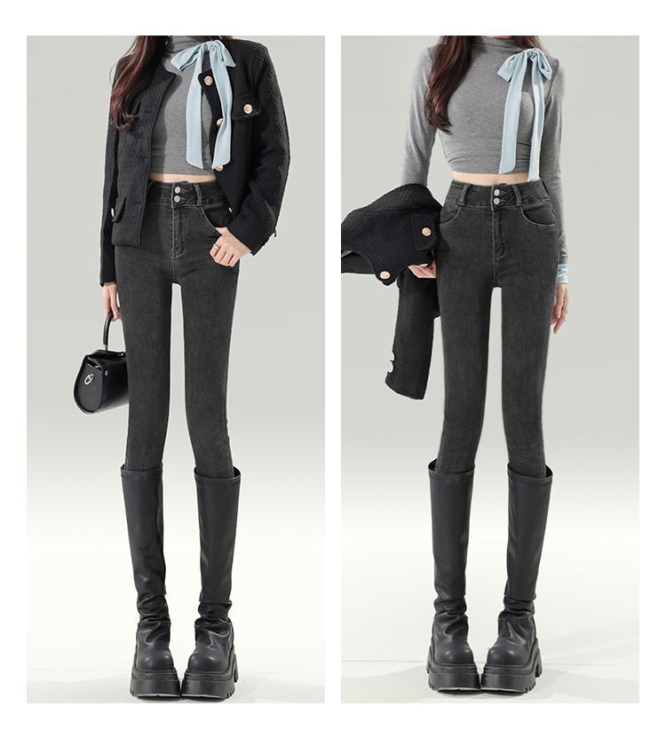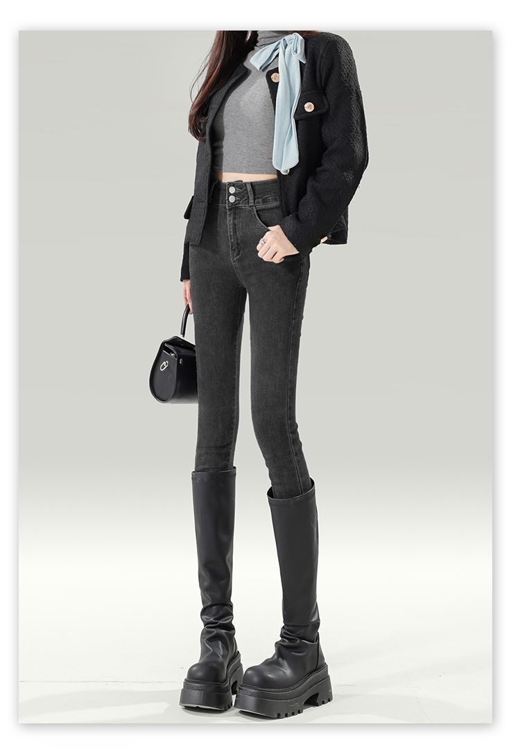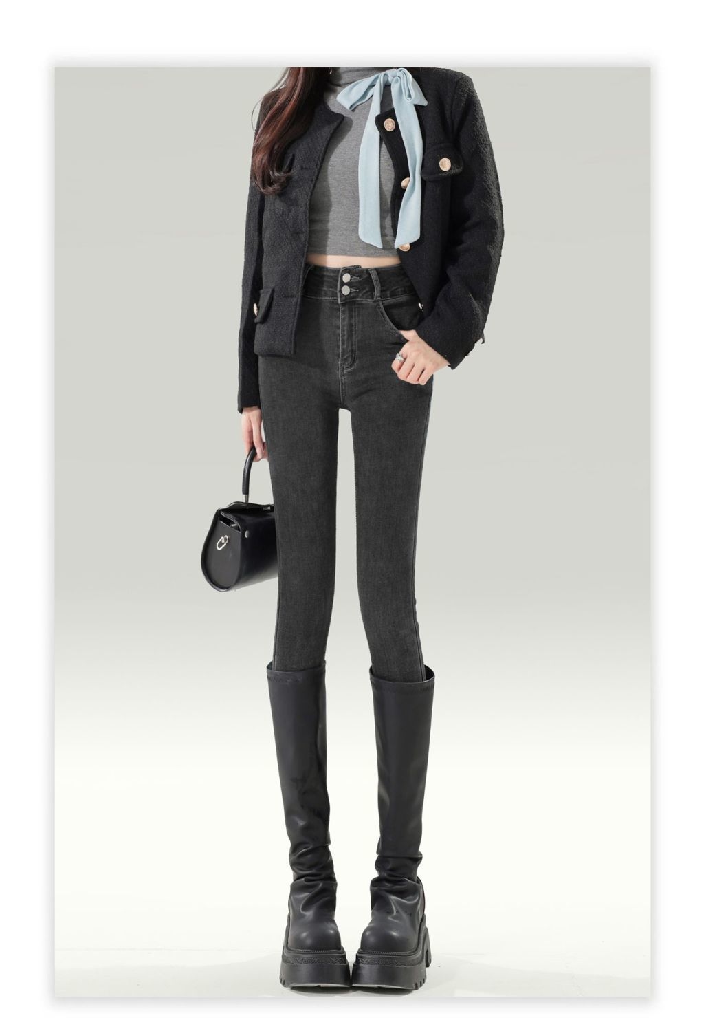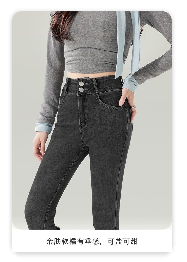 Calça Jeans Skinny Stretch Preta Cinza Feminina Primavera Outono e Inverno Nova Cintura Alta Design Slimming Calça Lápis