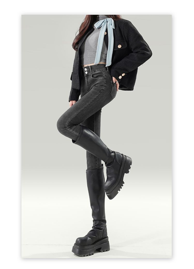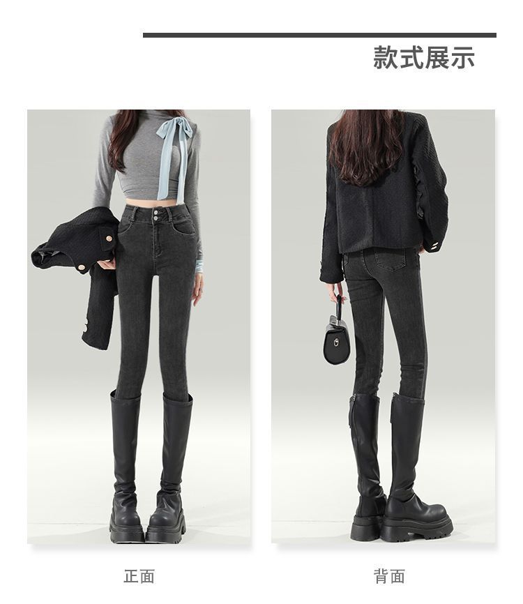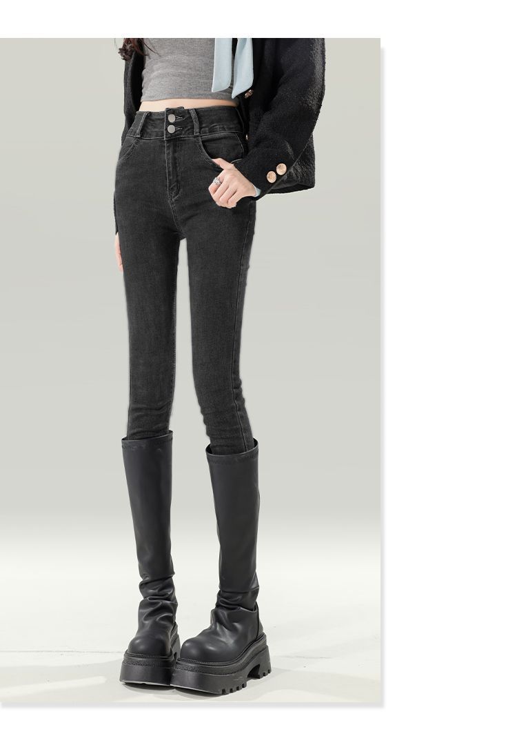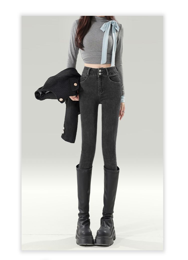 Calça Jeans Skinny Stretch Preta Cinza Feminina Primavera Outono e Inverno Nova Cintura Alta Design Slimming Calça Lápis