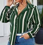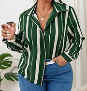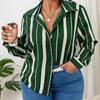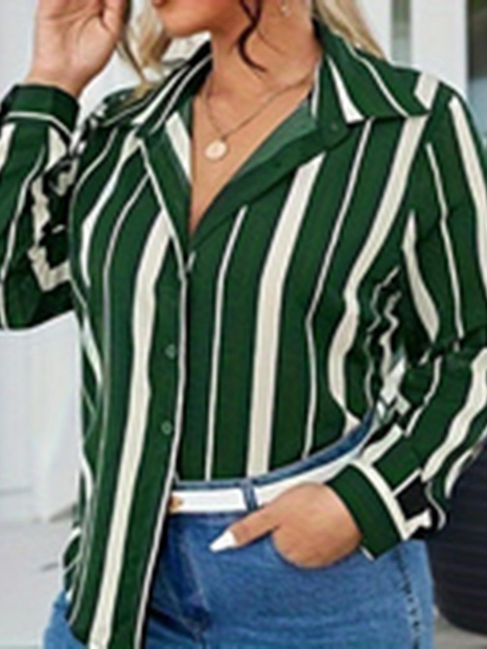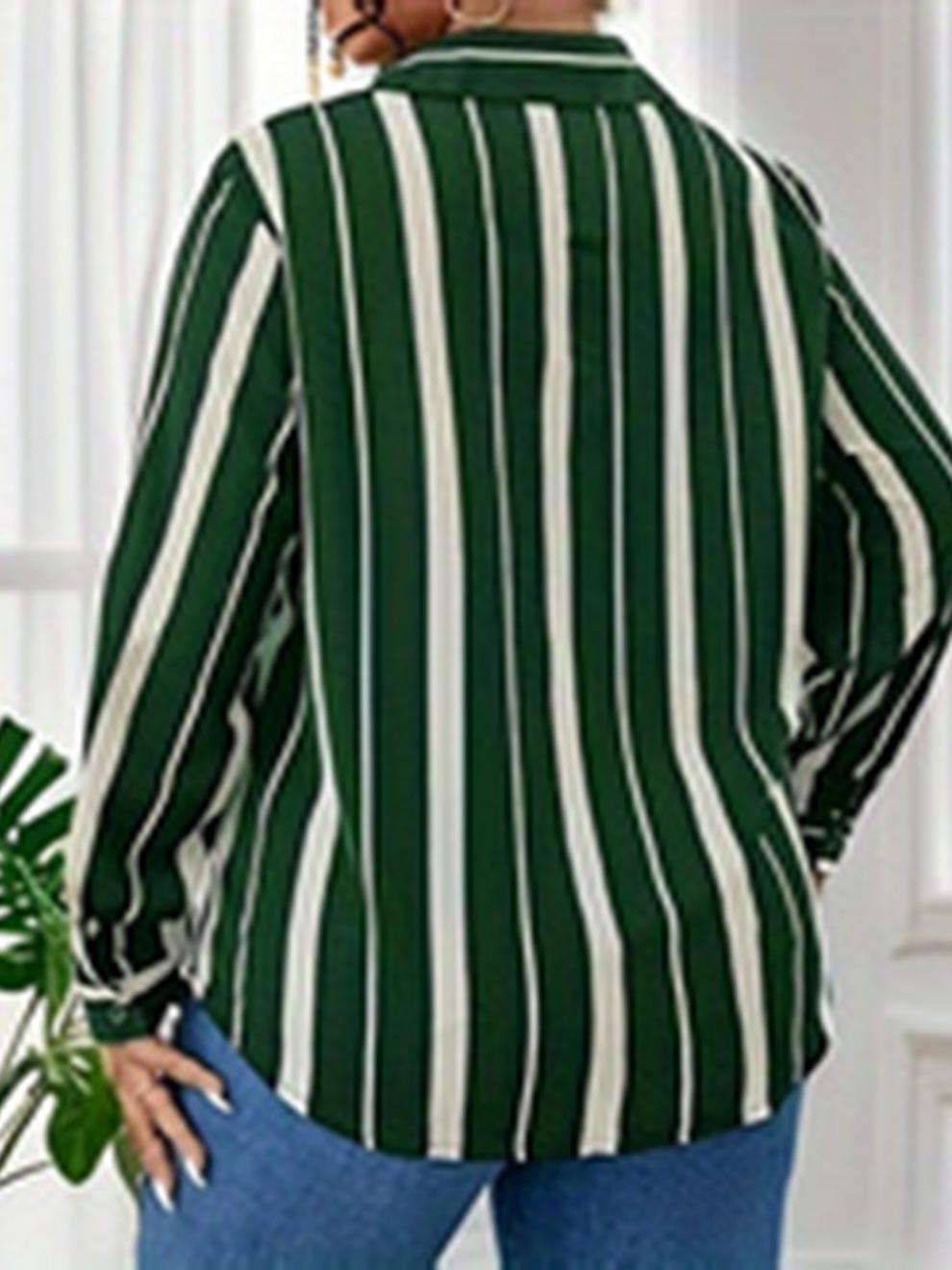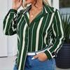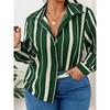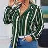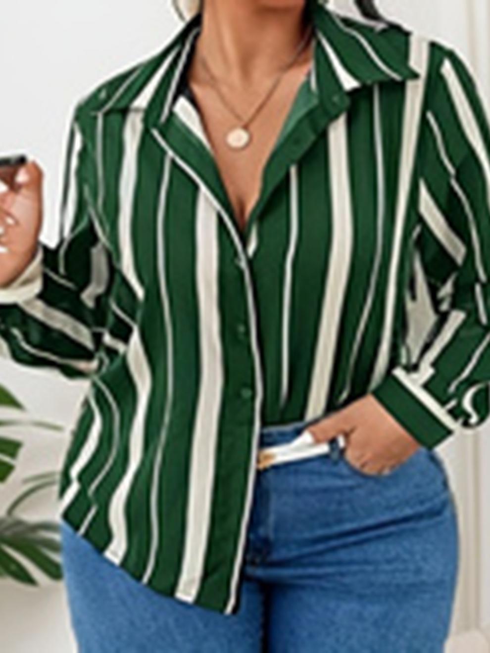 Europeu e americano plus size feminino 2025 primavera nova gola em v botão listrado camisa manga comprida blusa