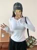 Camiseta feminina de manga comprida com gola semiaberta branca, nova primavera e outono de 2025, gola redonda slim fit, base interna