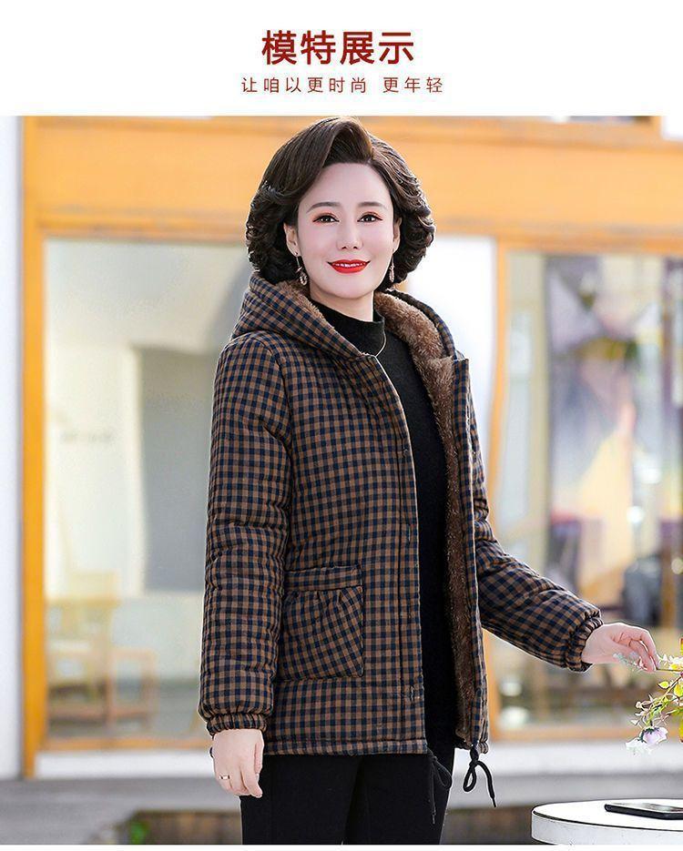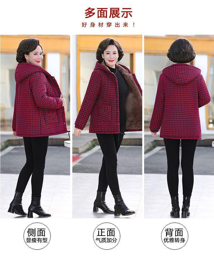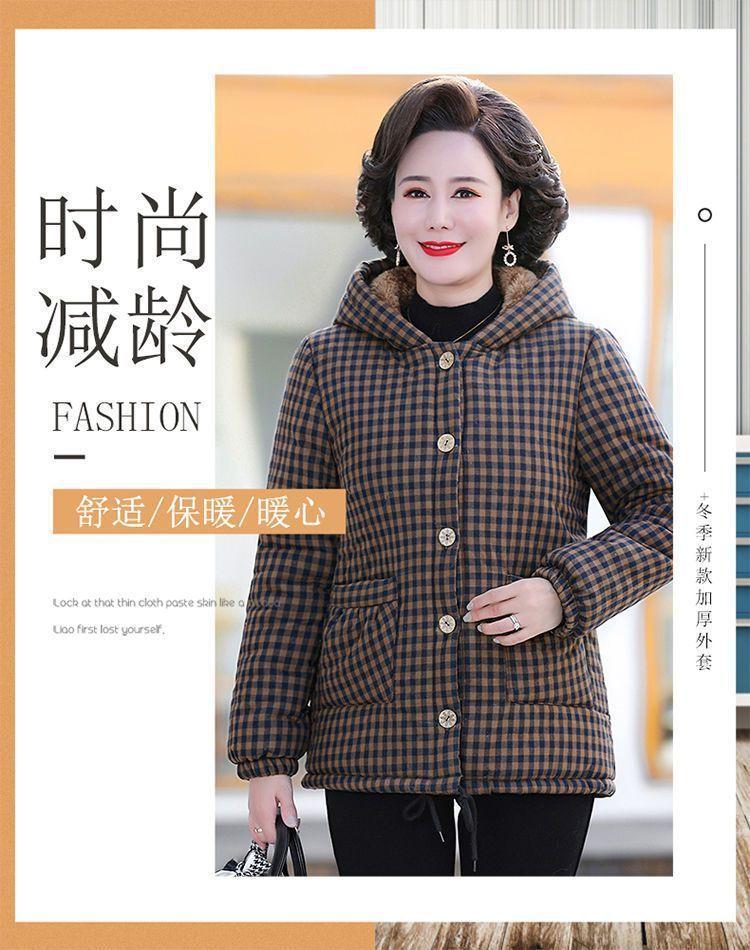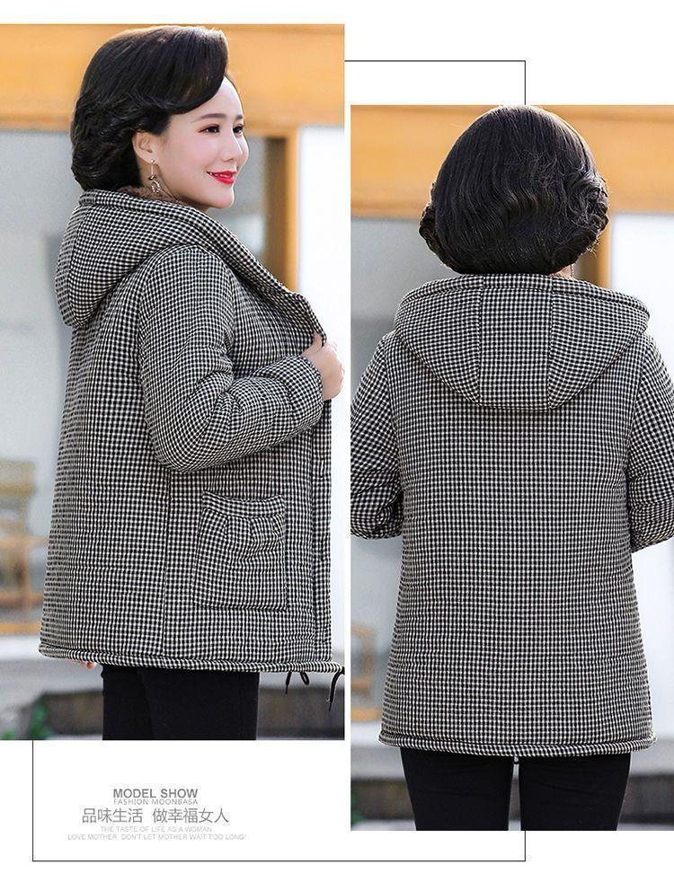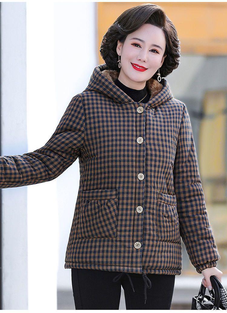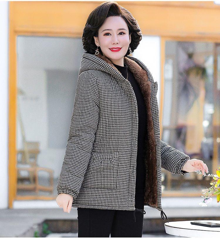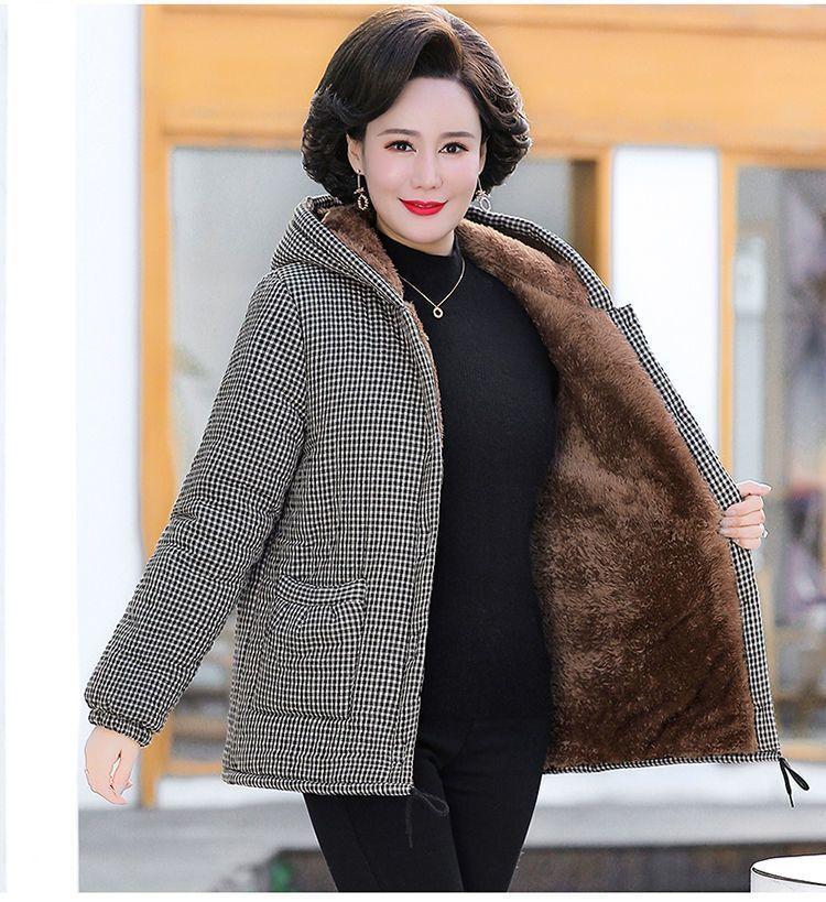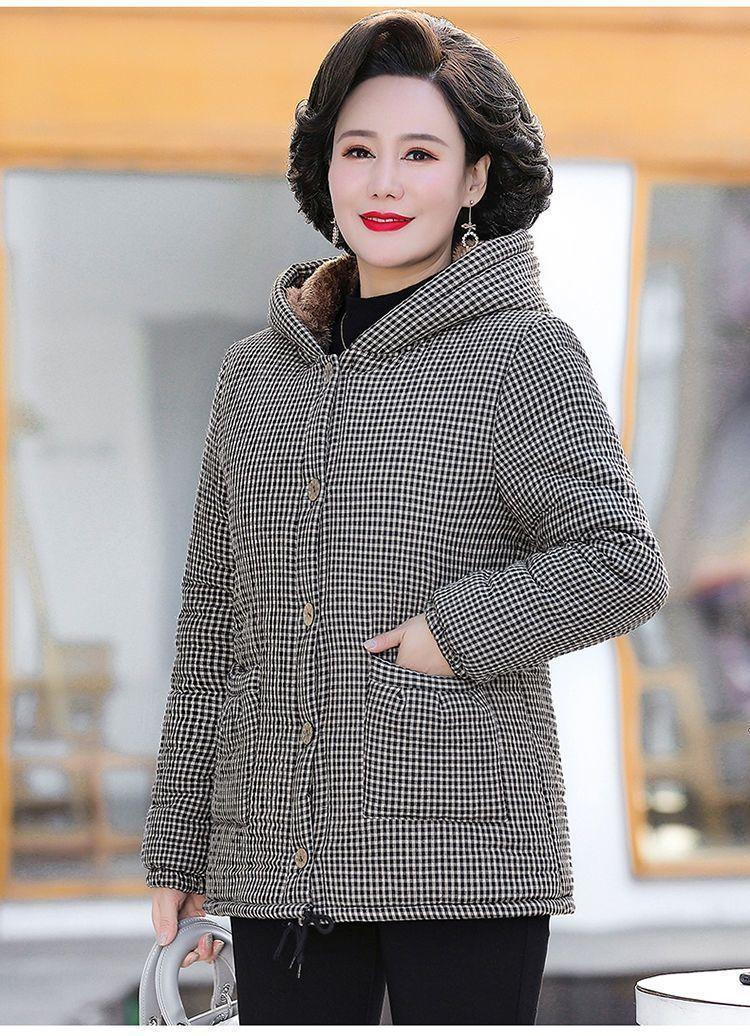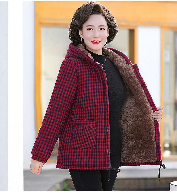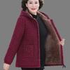 Meia-idade e idosos outono e inverno novo casaco forrado de lã espessado acolchoado de algodão feminino quente com capuz pequeno casaco acolchoado de algodão mãe solto casaco acolchoado de algodão