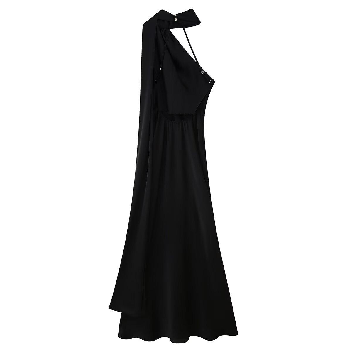 2025 primavera nova moda feminina europeia e americana transfronteiriça temperamento seda cetim textura fita pescoço saia longa w028 6589