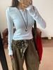 Camiseta feminina estilo americano, gola redonda, ombro de fora, slim fit, primavera e outono, nova camisa básica emagrecedora, decote em V, manga comprida