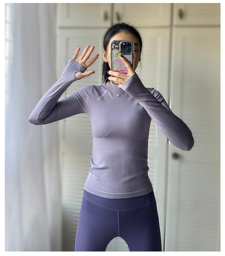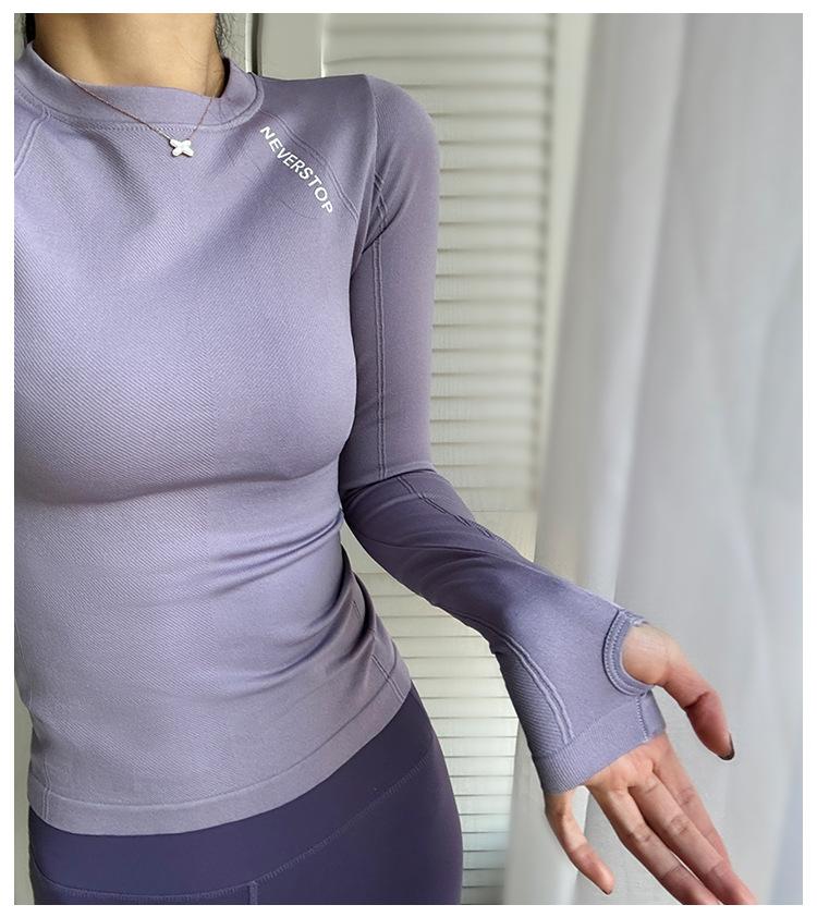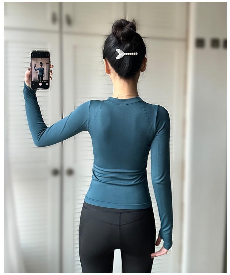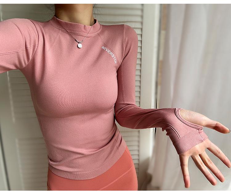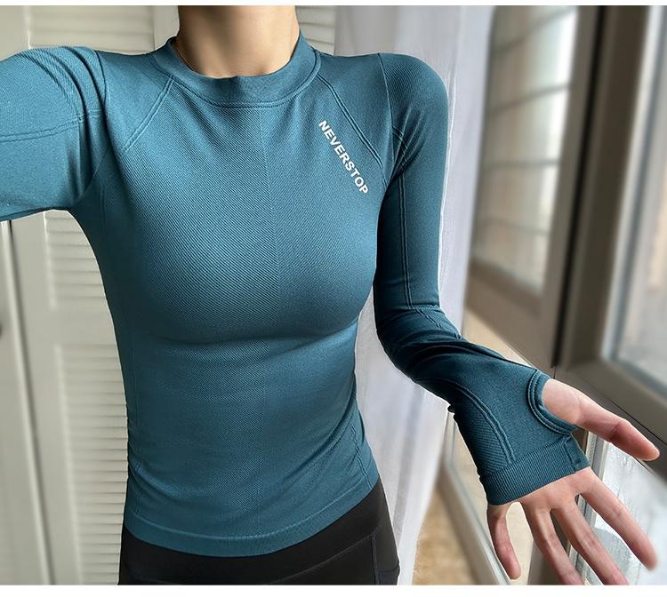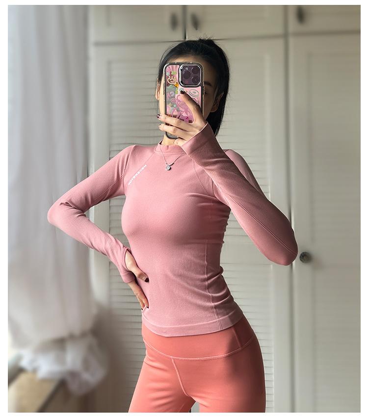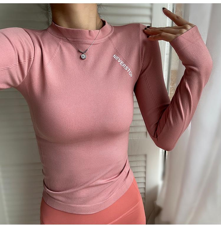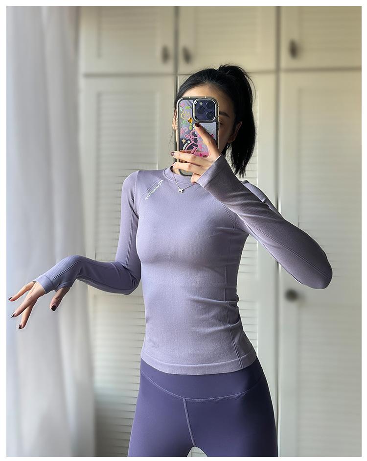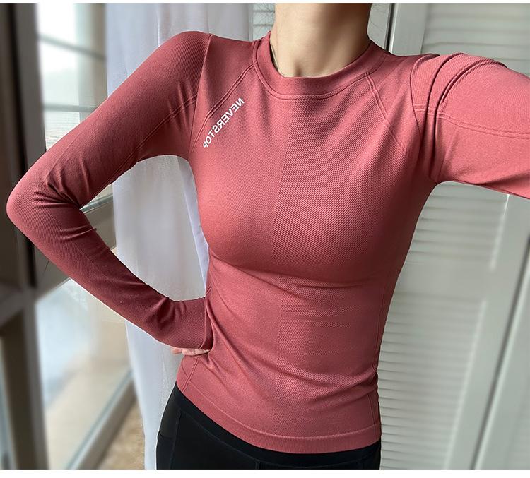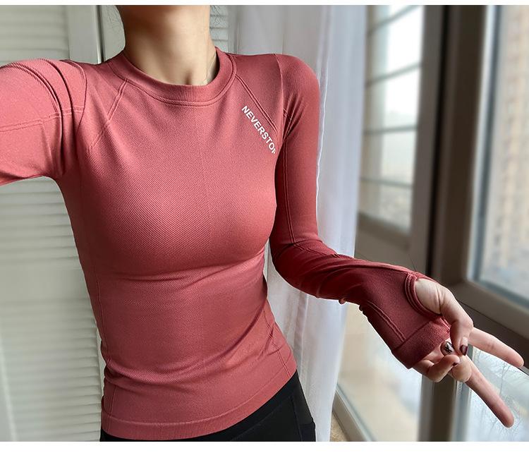 Camiseta esportiva feminina com letras, justa, outono e inverno, secagem rápida, roupa de ioga, famosa na Internet, treino de emagrecimento, top de manga comprida
