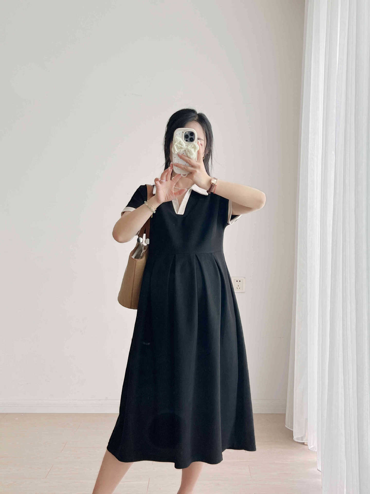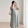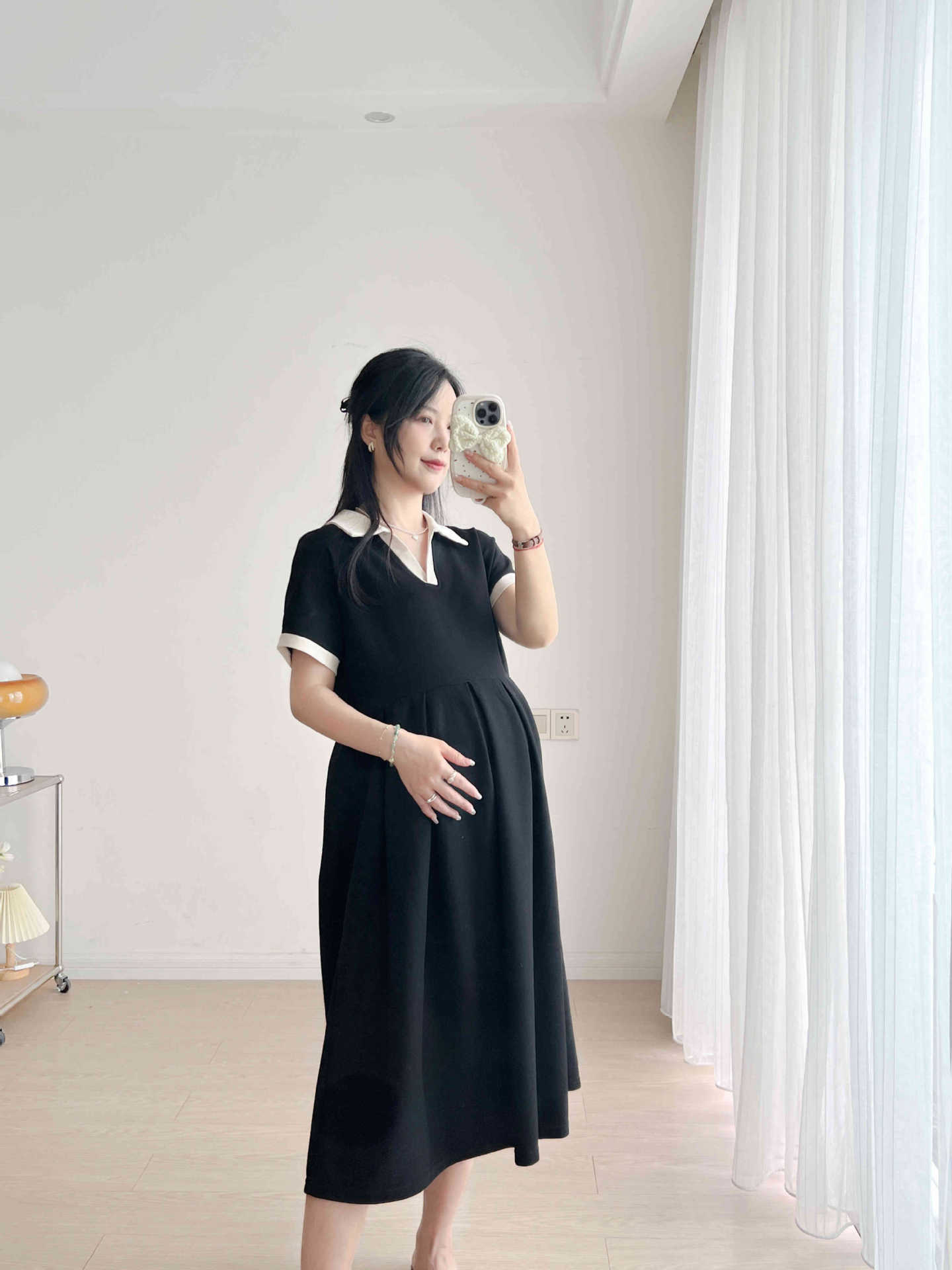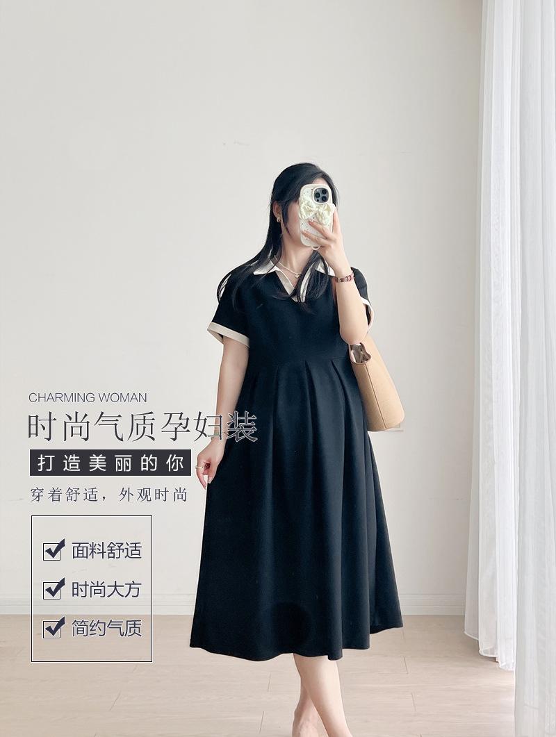 Vestido de verão para mulheres grávidas, estilo coreano, 2025, novo vestido de maternidade de verão, slim, preto, plus size, saia em linha A