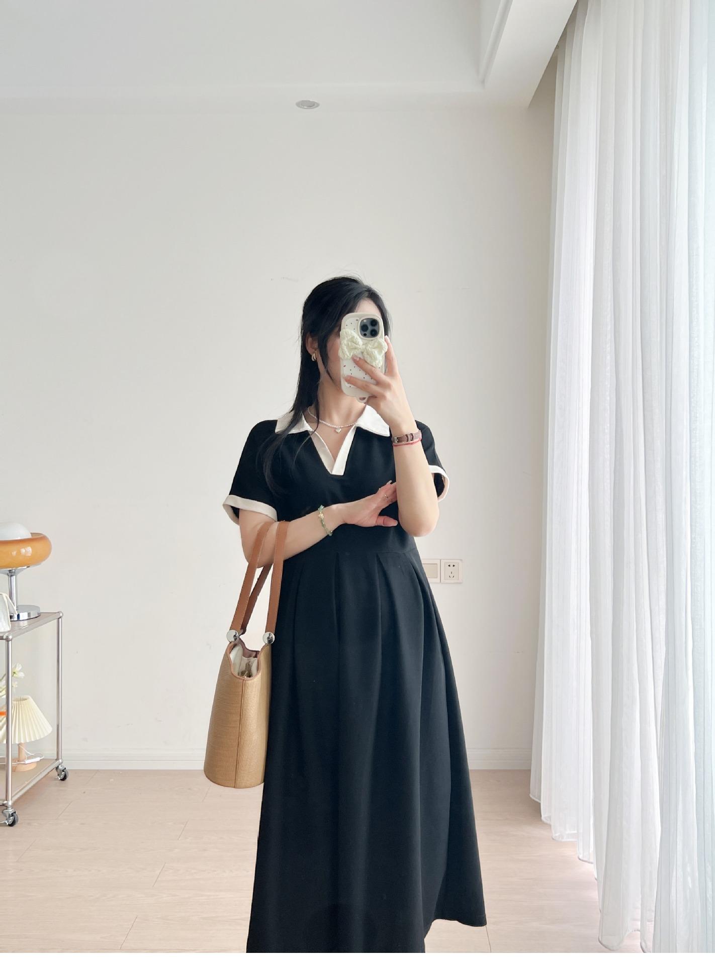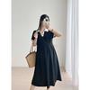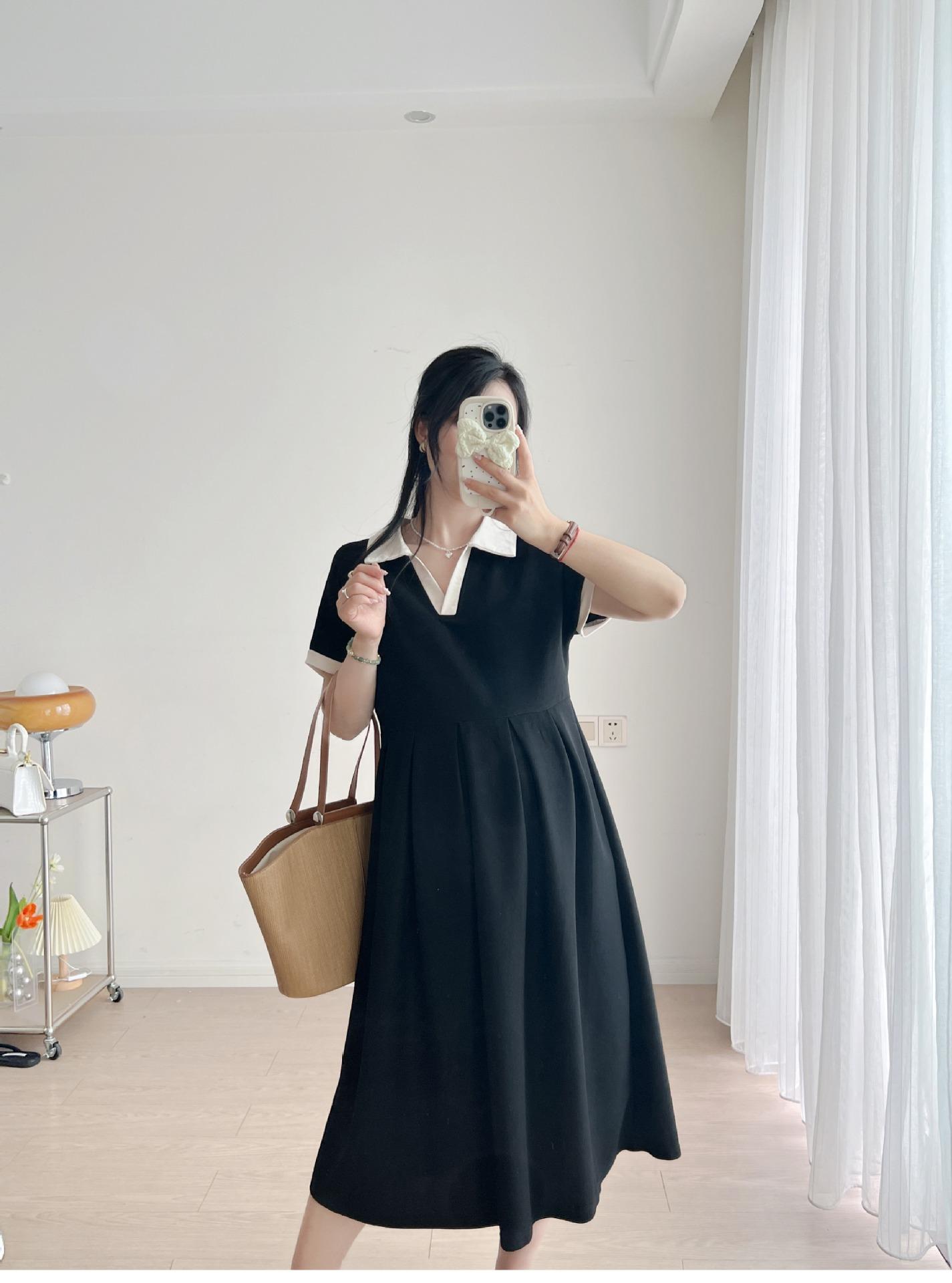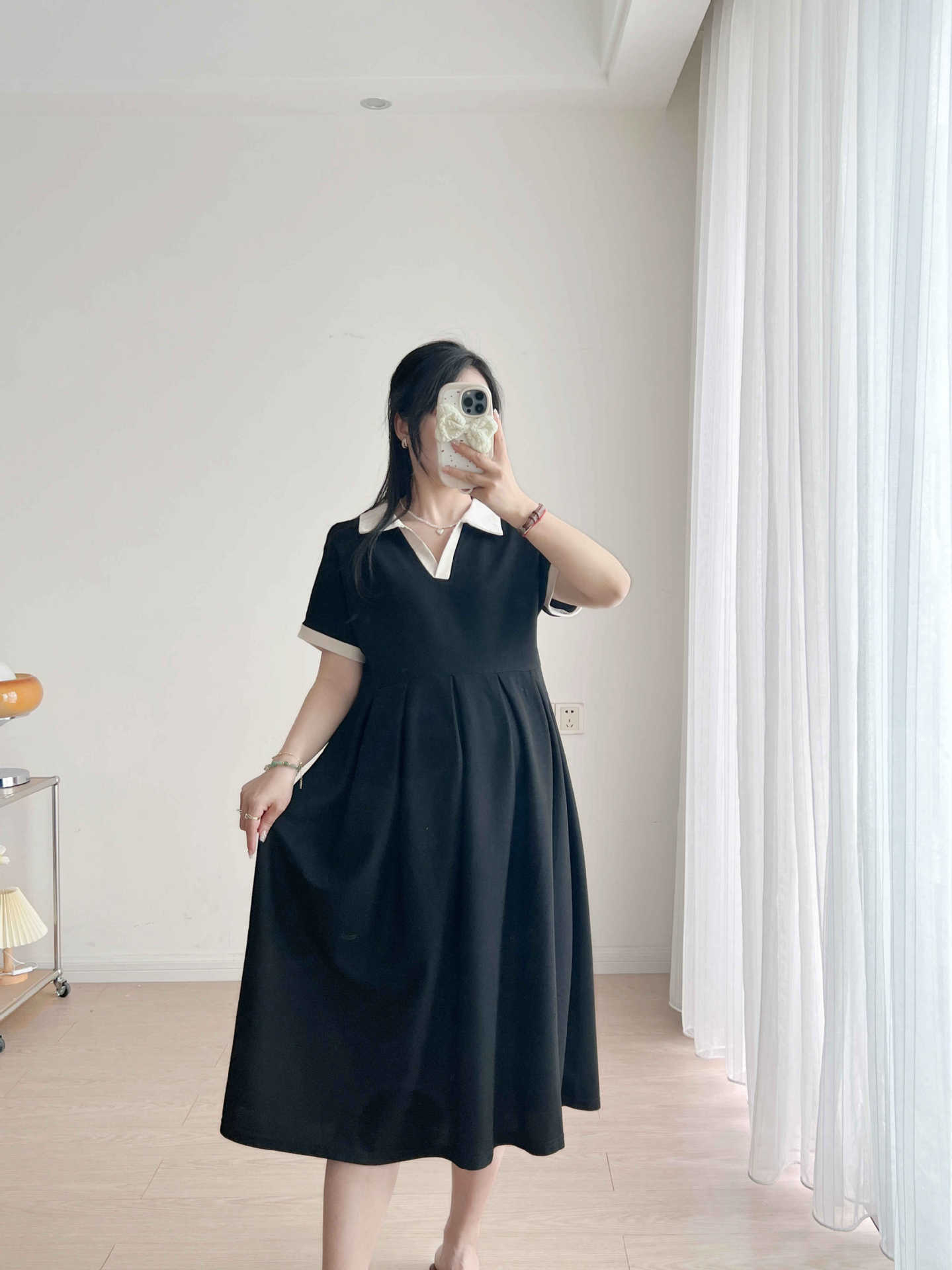 Vestido de verão para mulheres grávidas, estilo coreano, 2025, novo vestido de maternidade de verão, slim, preto, plus size, saia em linha A