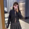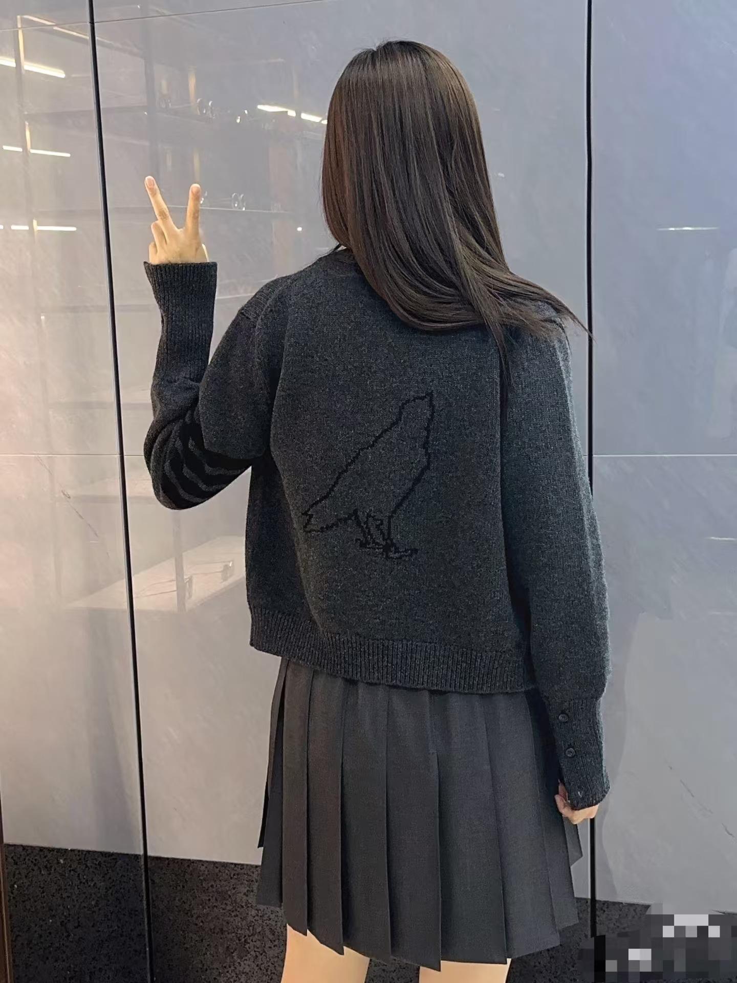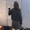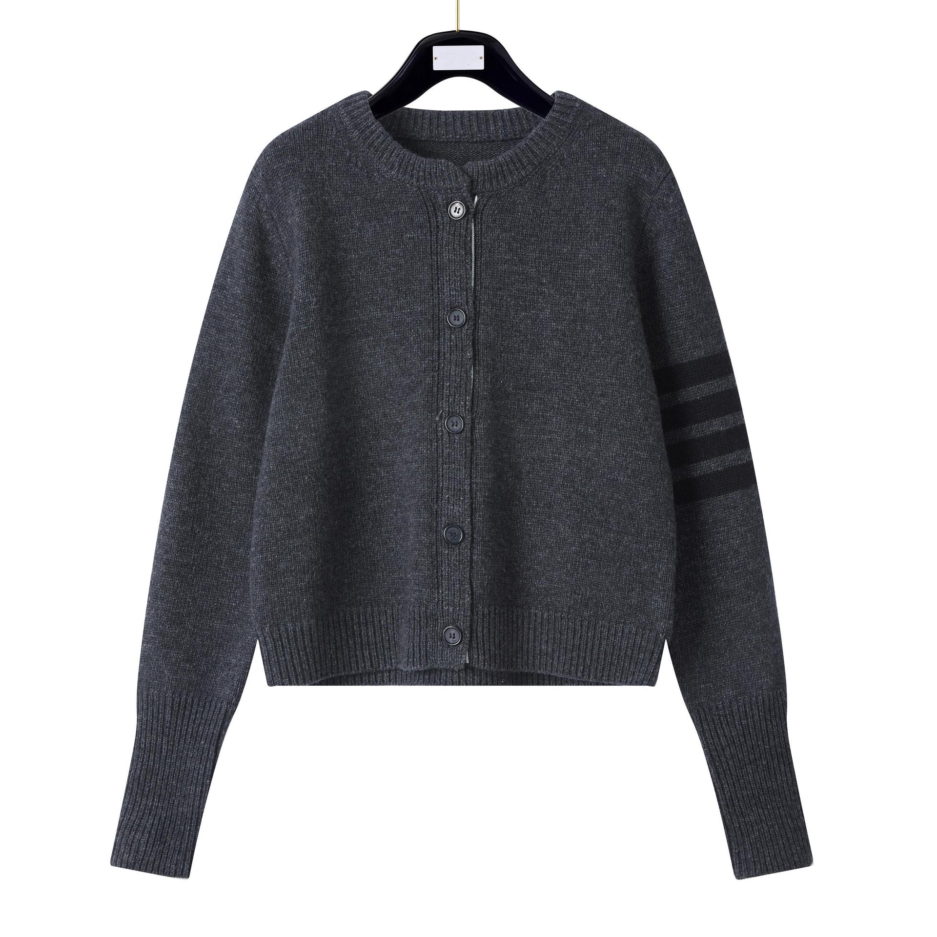 Cardigã Feminino Novo de Tricô com Gola Redonda Casaco Top Versátil Casual Corvo nas Costas