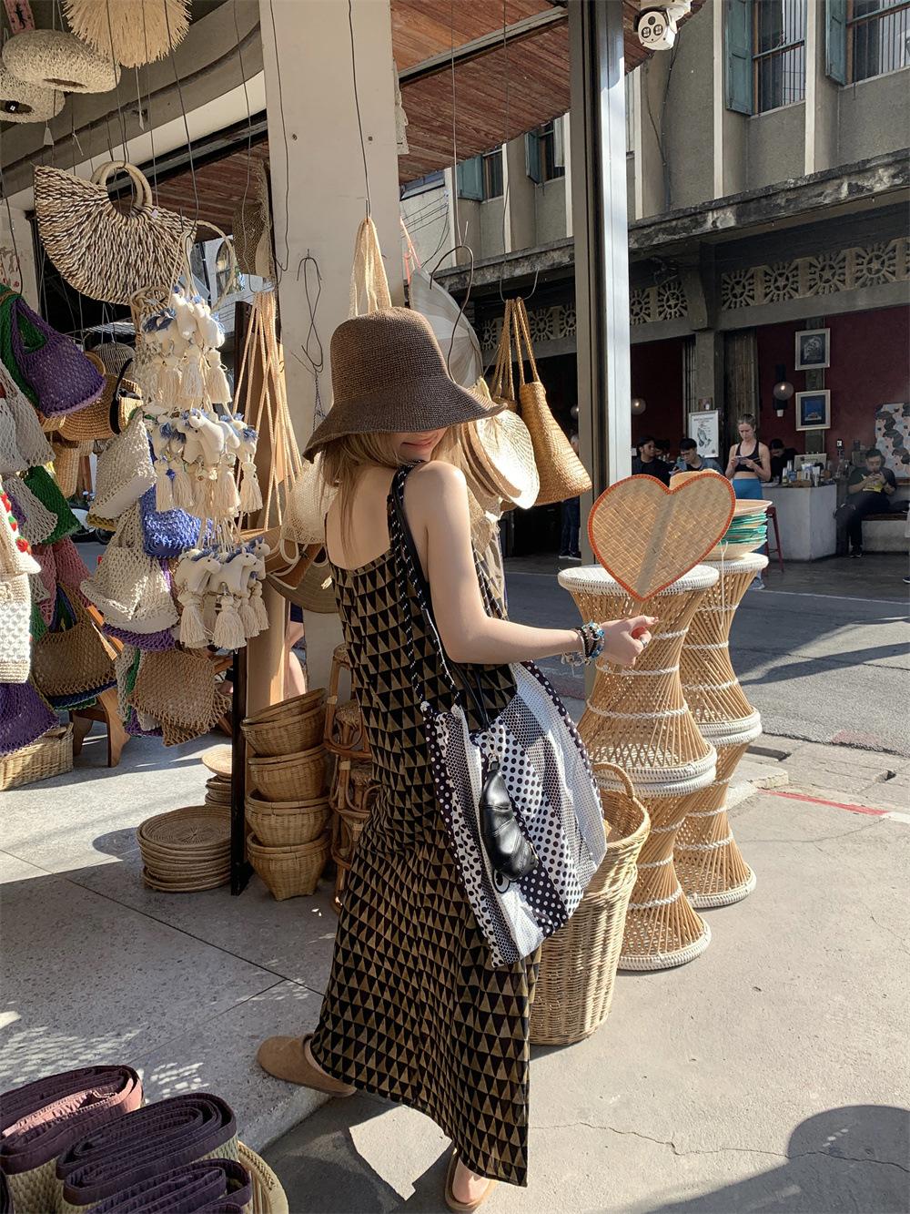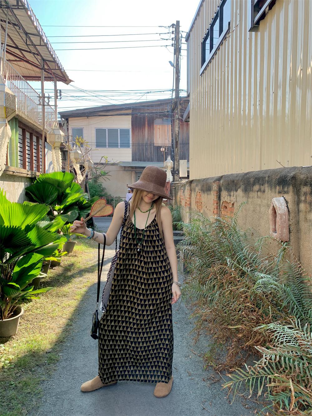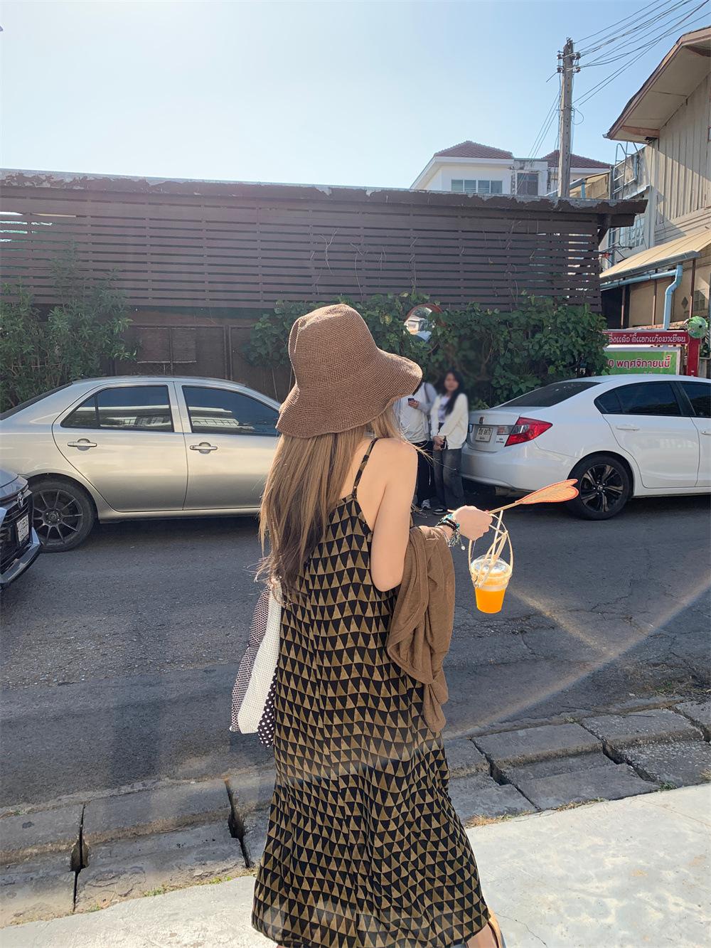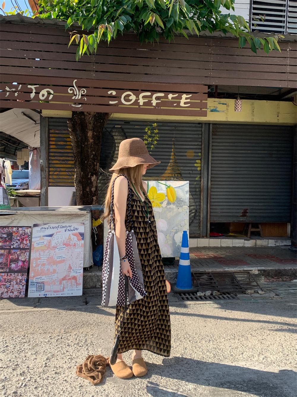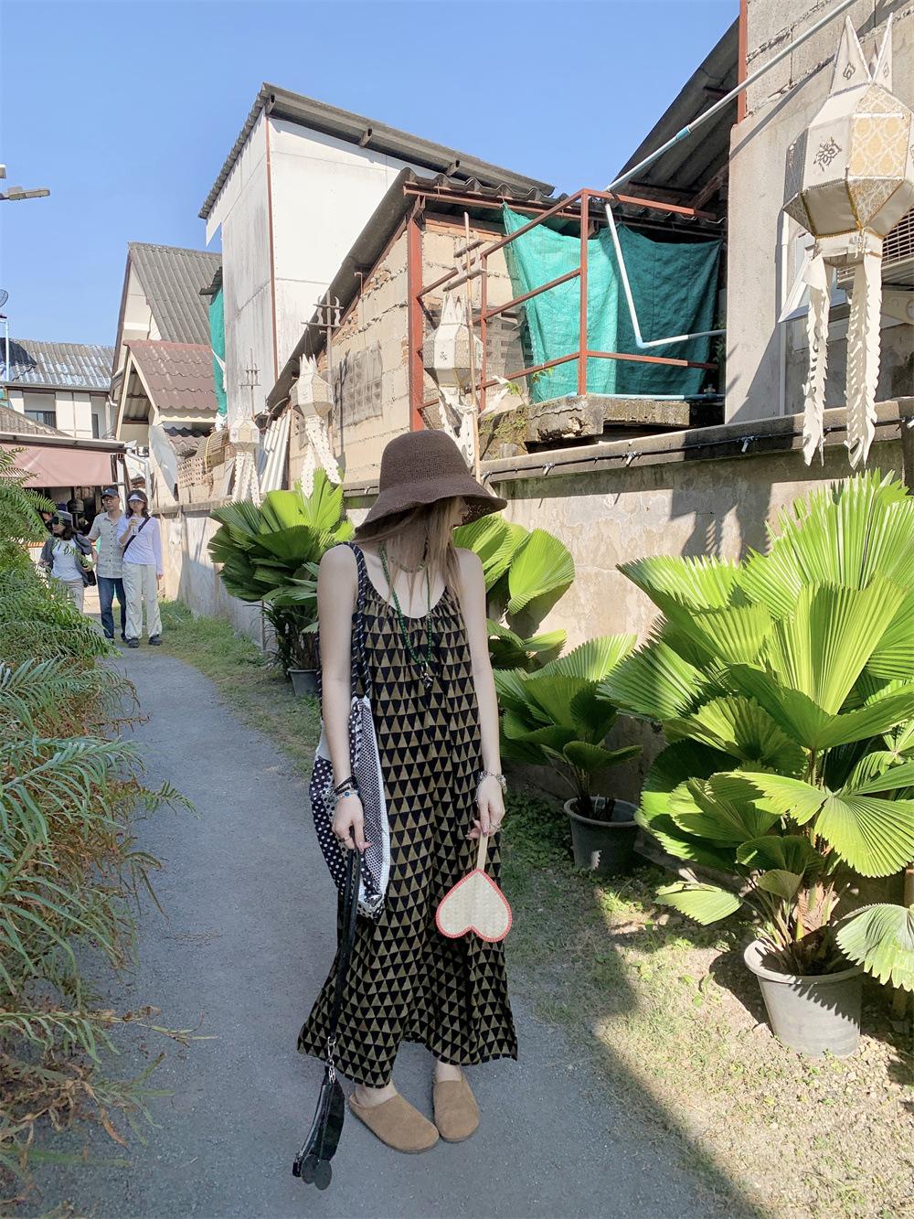 2025 Novo Estilo de Verão Elegante Vestido Regata Estampado Vestido Suspensório Estilo Resort Beira-Mar Saia Longa de Praia Saia Retrô Americana