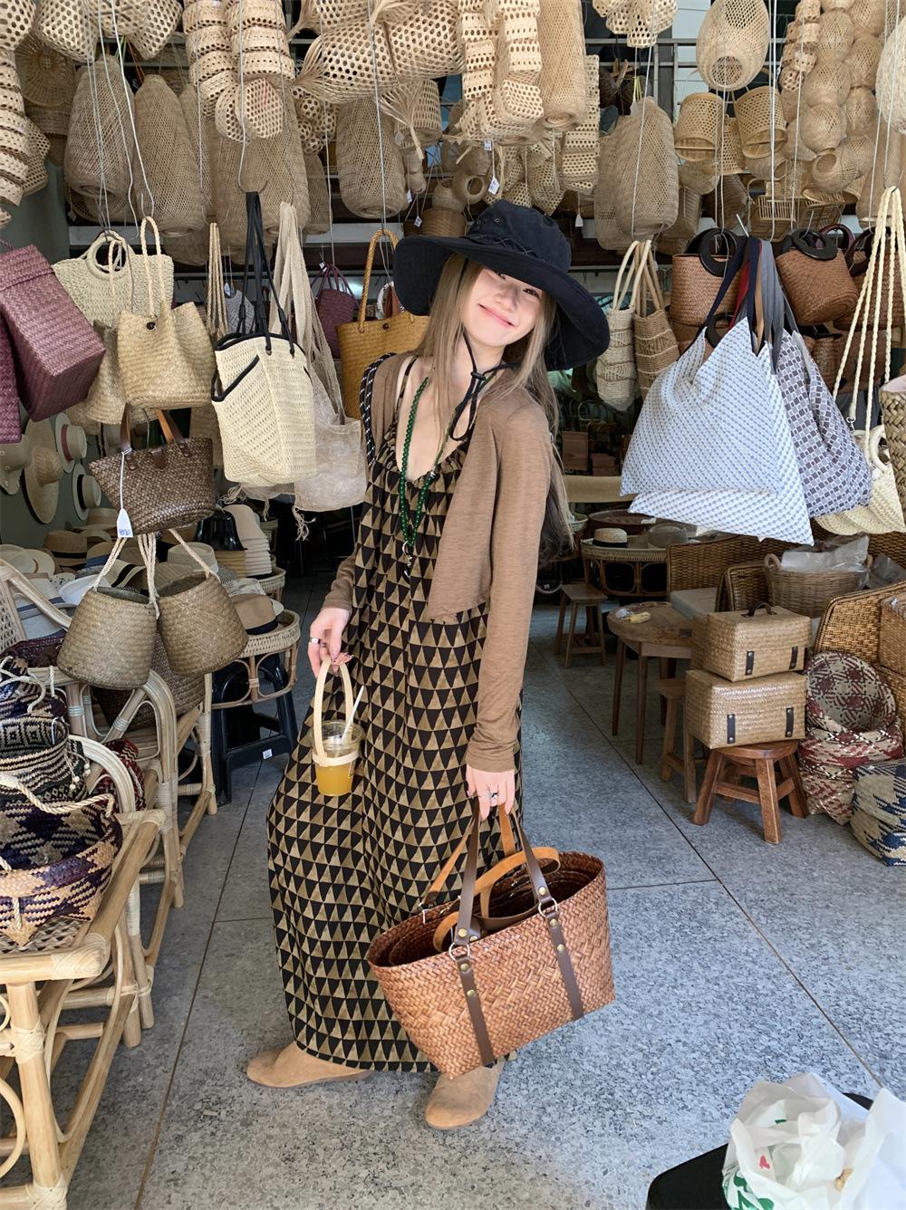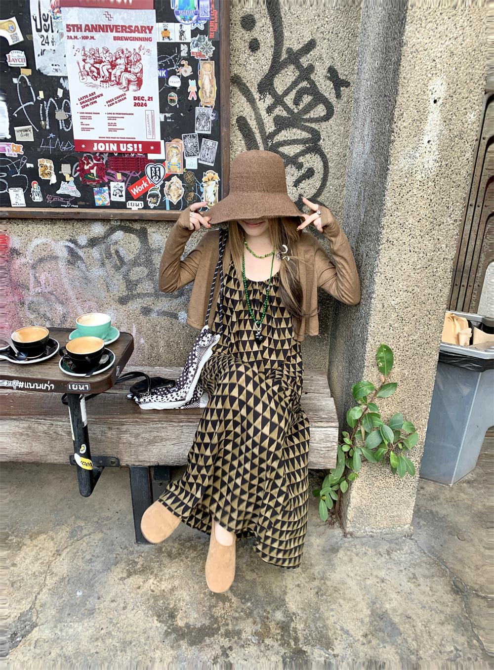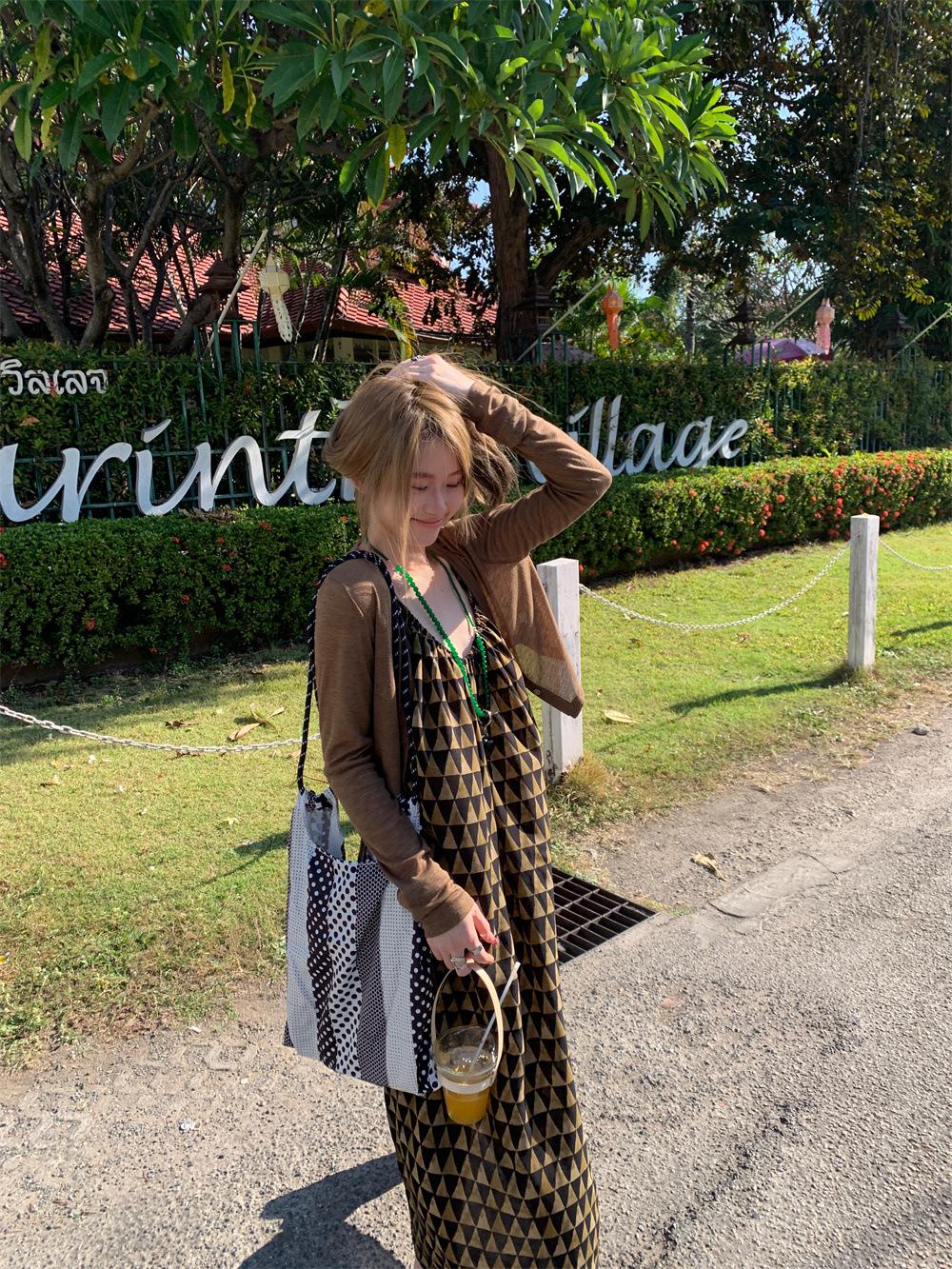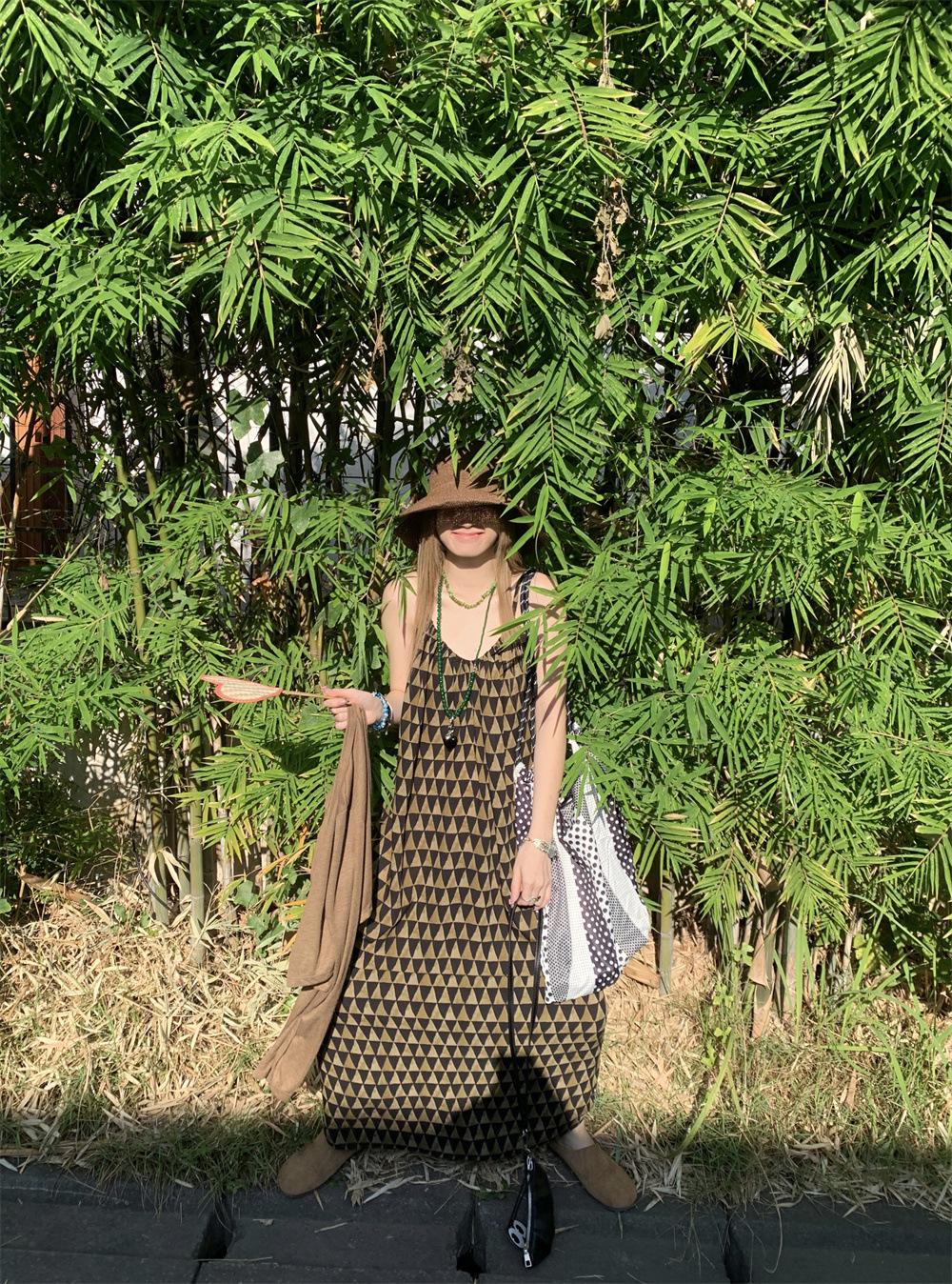 2025 Novo Estilo de Verão Elegante Vestido Regata Estampado Vestido Suspensório Estilo Resort Beira-Mar Saia Longa de Praia Saia Retrô Americana