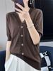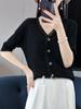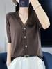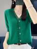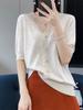 Suéter de lã penteada feminino, pulôver, decote em V, falso, cardigan, cor sólida, elegante, solto, casual, manga média, base, top