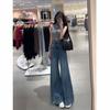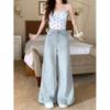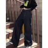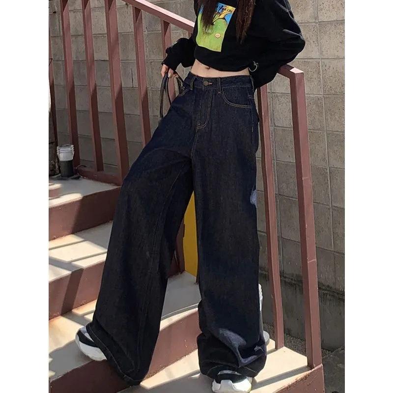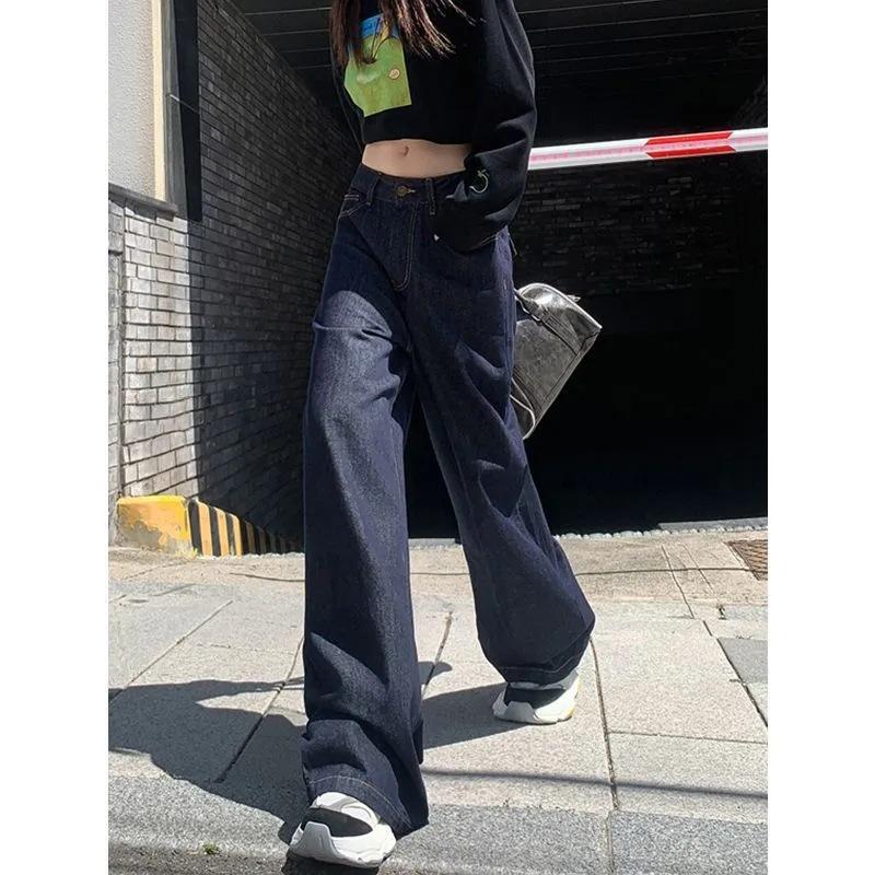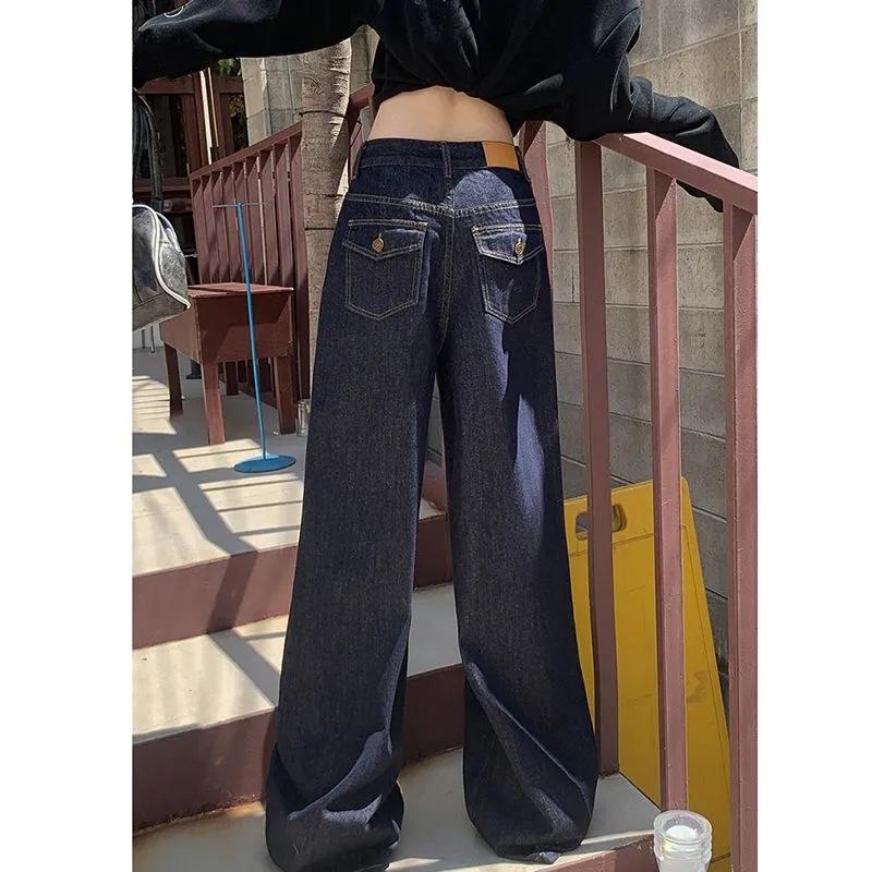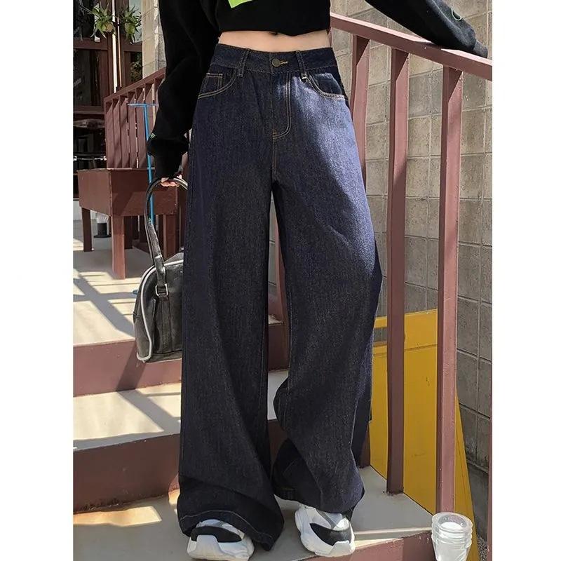 Jeans estilo americano azul escuro perna larga feminino novo 2024 outono internet popular moda solta calças de emagrecimento