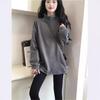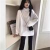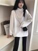 Camisa feminina de gola média-alta 2024, nova blusa de manga comprida solta e quente para outono e inverno