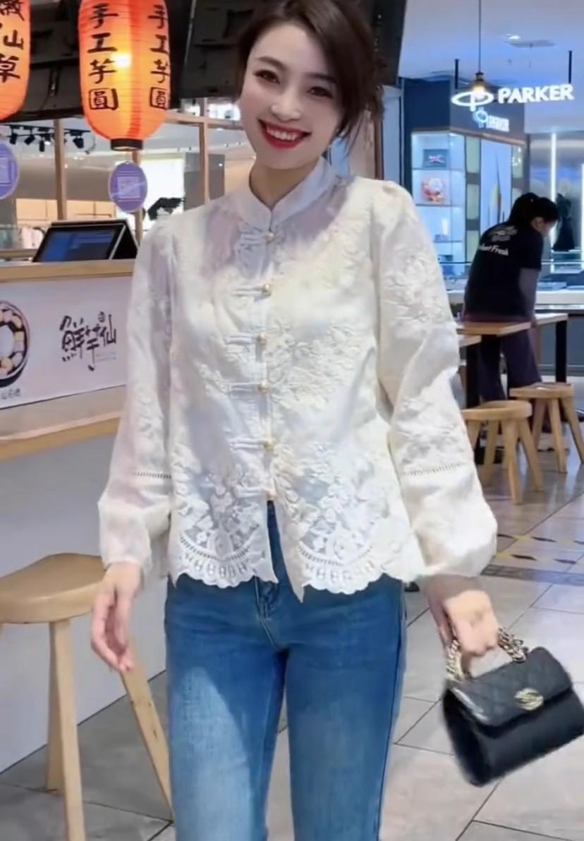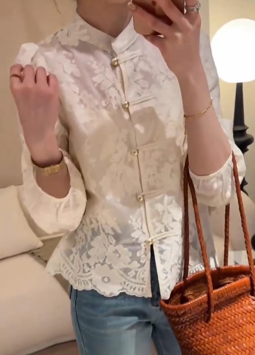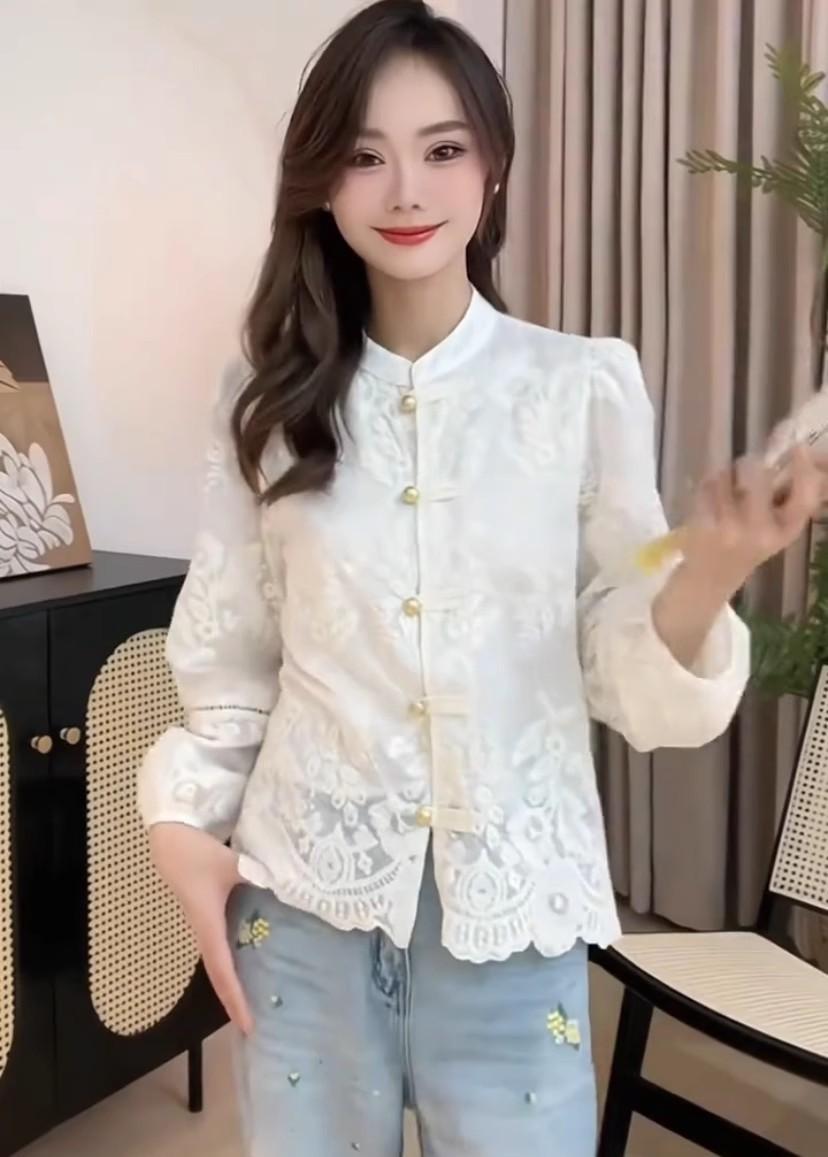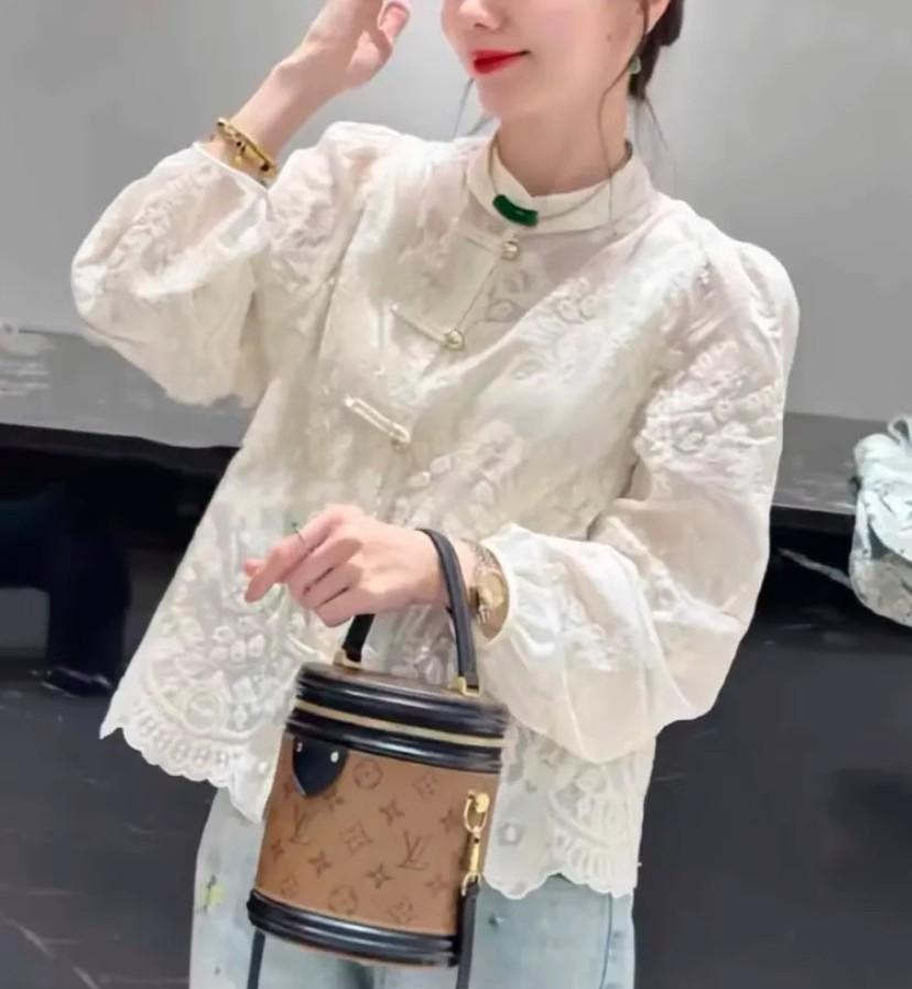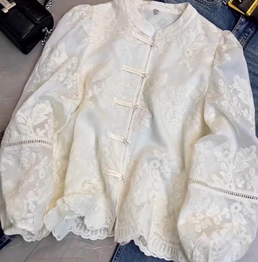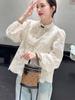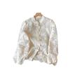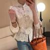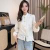 Nova camisa de renda de manga comprida estilo nacional chinês feminina primavera e outono novo design elegante doce sentido pequena camisa top