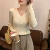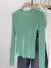 Blusa Básica de Tricô Fina para Mulheres, Top Pulôver de Gola Redonda, Primavera e Outono Slim-Fit Doce e Apimentada Chic Ligeiramente Transparente Suéter de Manga Longa para o Dia a Dia