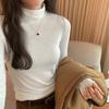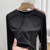Camiseta feminina de manga comprida com decote redondo e ombro de fora, primavera e outono de 2025, novo design, cor sólida, simples, quente, slim-fit, top slim-fit