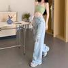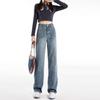 Vintage Design Sense Calça Jeans Perna Larga Feminina Solta Calça Casual Fina Calça Longa Calça Azul