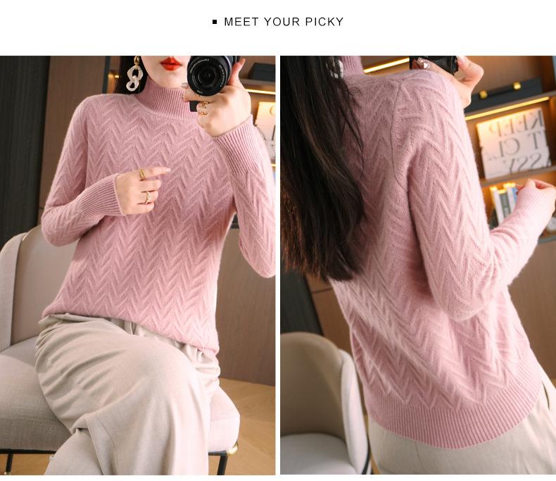 Andy veludo semi-alta gola quente camisa de fundo feminino outono e inverno nova moda all-match suéter grosso suéter feminino