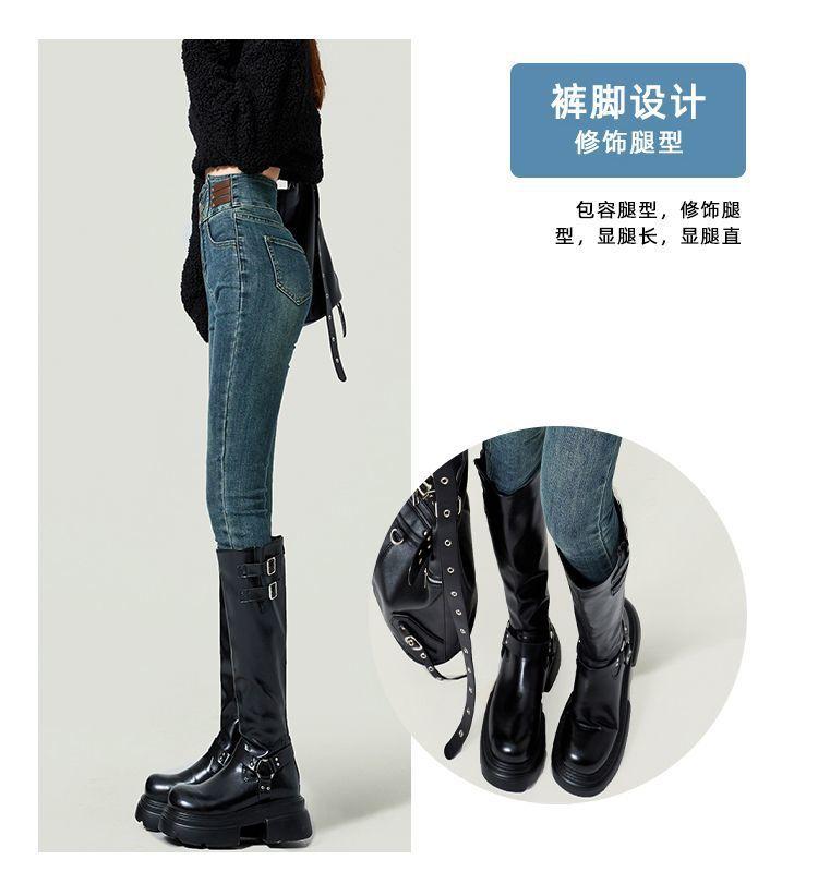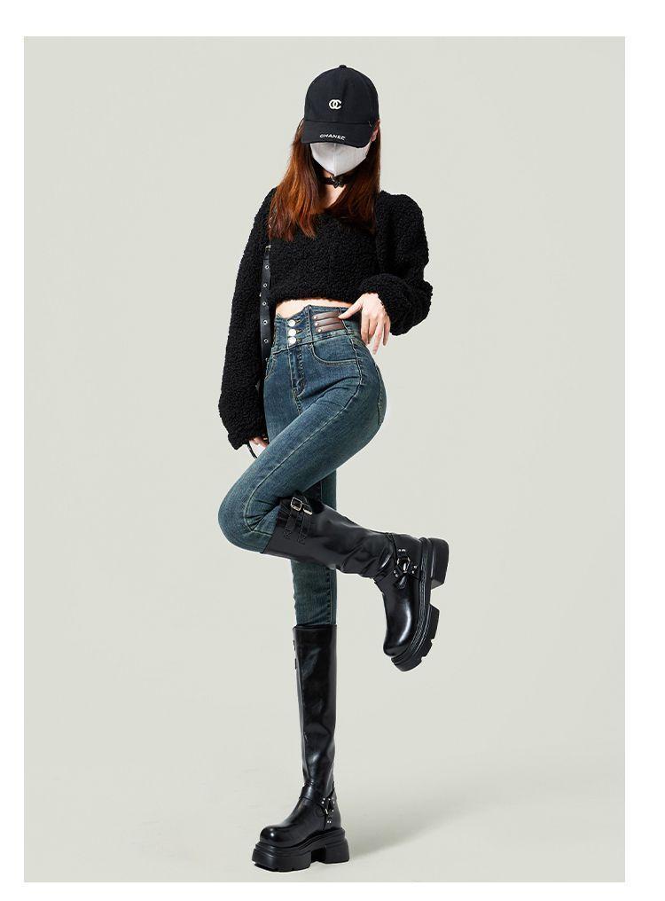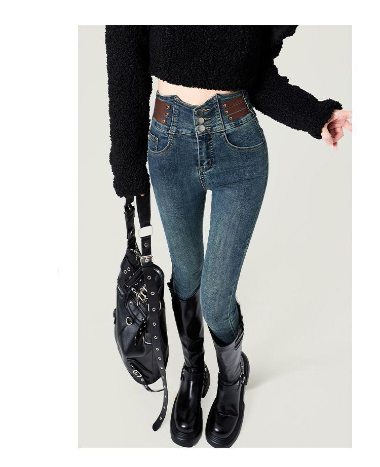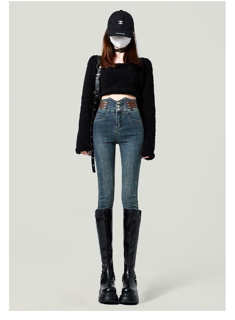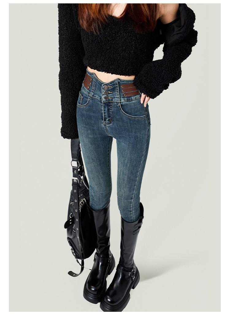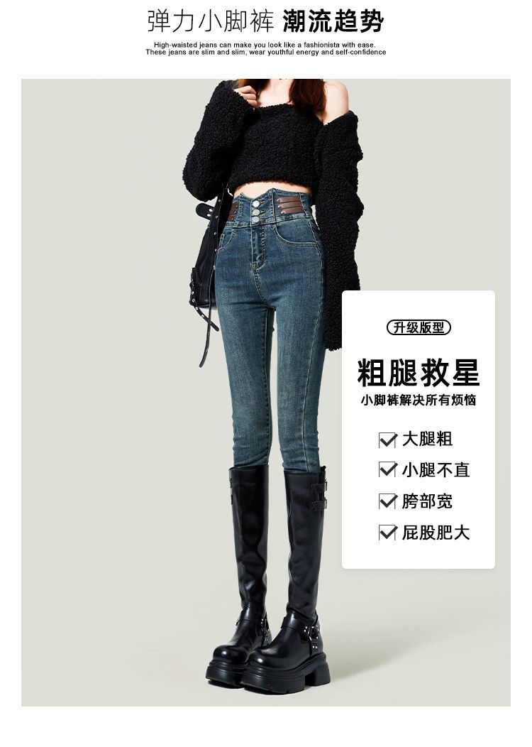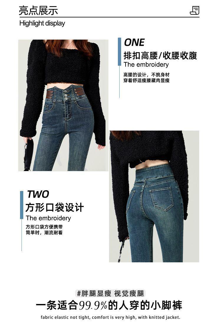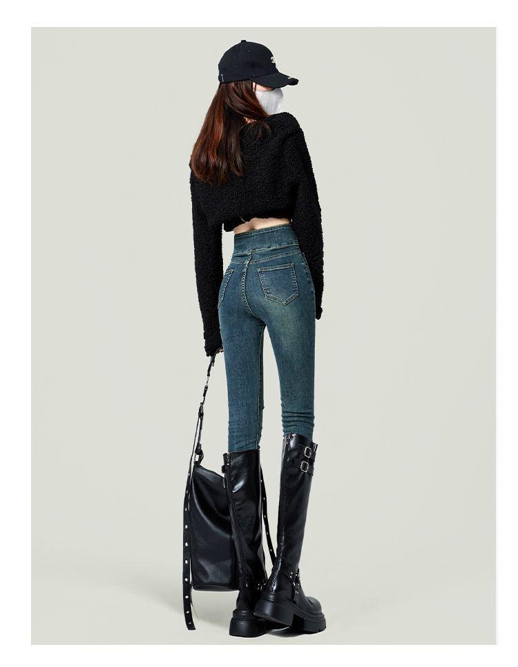 Calça Jeans Skinny de Cintura Super Alta Feminina Estilo Coreano Primavera e Outono Nova Calça Lápis Skinny Stretch Slim Fit da Moda