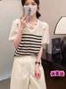 Camiseta feminina de manga curta listrada com redução de idade, verão 2024, novo estilo, design de top, senso de nicho, verão, pequena