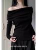 Estilo francês Pure Desire Style Slim Fit Top Feminino Outono e Inverno New Spice Girl ombro de fora Nicho Elegante Interior Suéter de Malha de Manga Comprida
