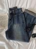 Calças jeans femininas com design de início de primavera, bolso grande, soltas, azul, cinza, cintura alta, formato de pêra, pernas largas, calças retas