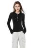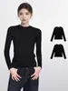 Camiseta feminina estilo americano, manga comprida, ombro preto, início da primavera de 2025, nova camisa de base interna justa e quente, top curto