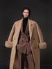 Lady Cuff Fox Fur Design Dupla face Camel Fur Coat Suit Elegante Casaco Feminino Comprimento Médio 24A0370
