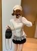 Camisa de viagem estilo Pure Desire com costura de renda e decote em V, camisa feminina de manga comprida para outono e inverno, blusa justa e justa
