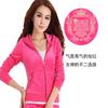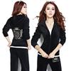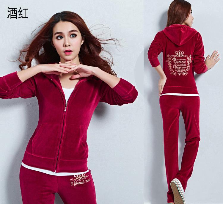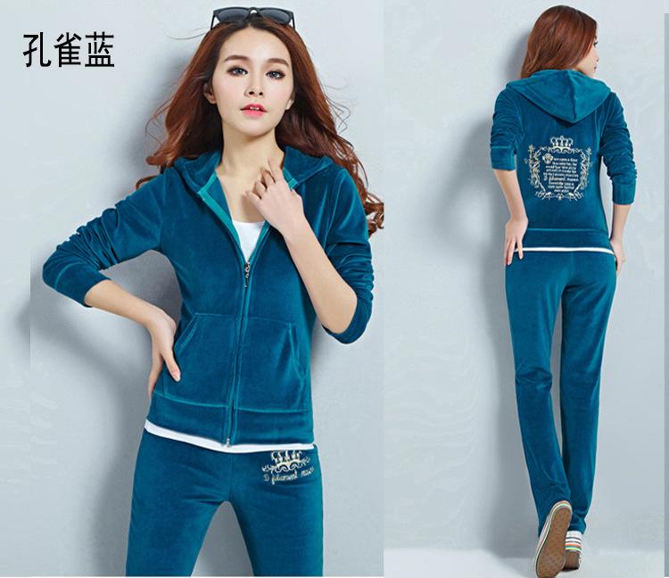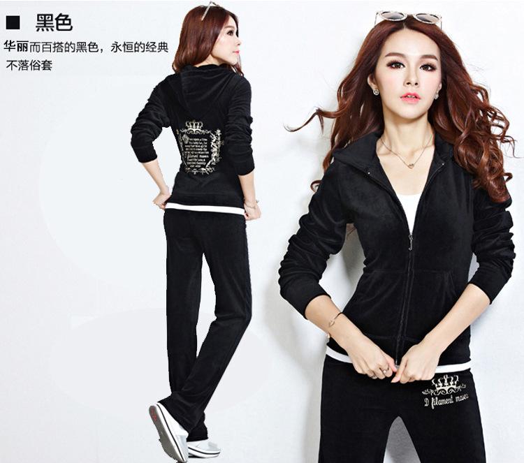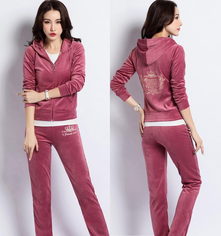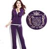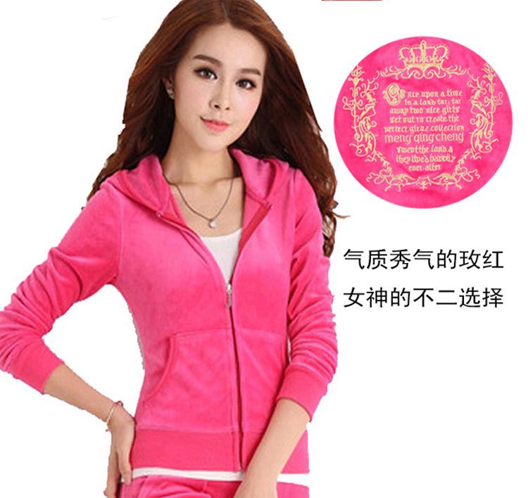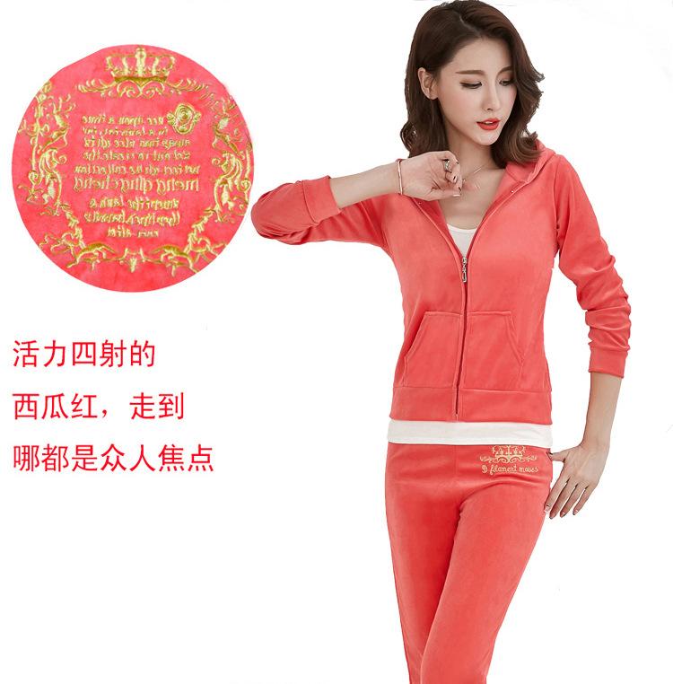 Primavera e Outono 2025 Veludo Esportes Manga Longa Zíper Bordado Calças Terno Coreano-estilo Ouro Veludo Casual Conjunto de Duas Peças