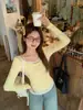 Camiseta Floral Amarela Cremosa Falsa de Duas Peças com Manga Longa para Mulheres, Estilo Primavera 2026, Suave e Doce, Perfeita para Figuras Petites