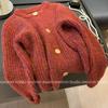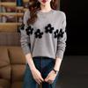 Tricô Feminino Cinza Solto com Contas de Outono e Inverno, Tricô Popular Feminino Novo de Inverno 2025 Preguiçoso e Sofisticado