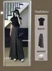 Terno da moda Preto Feminino 2024 Verão Novo Estilo Puro Elegante Cintura Alta Slimming Terno Calças de Perna Larga Terno Calças