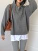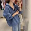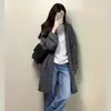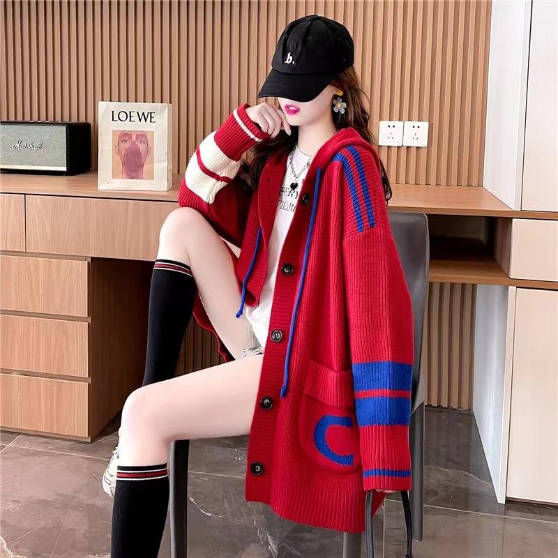 Suéter com Capuz Estilo Preguiçoso Cardigã Feminino Comprimento Médio Estilo Coreano Novo Outono e Inverno Design Solto Jaqueta Tricotada