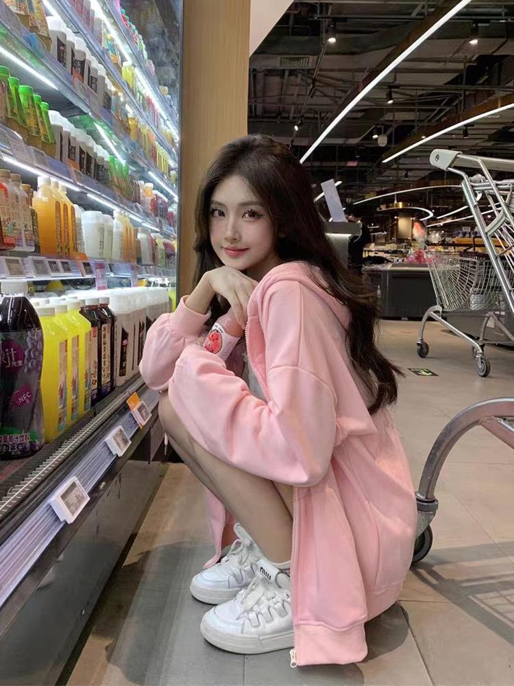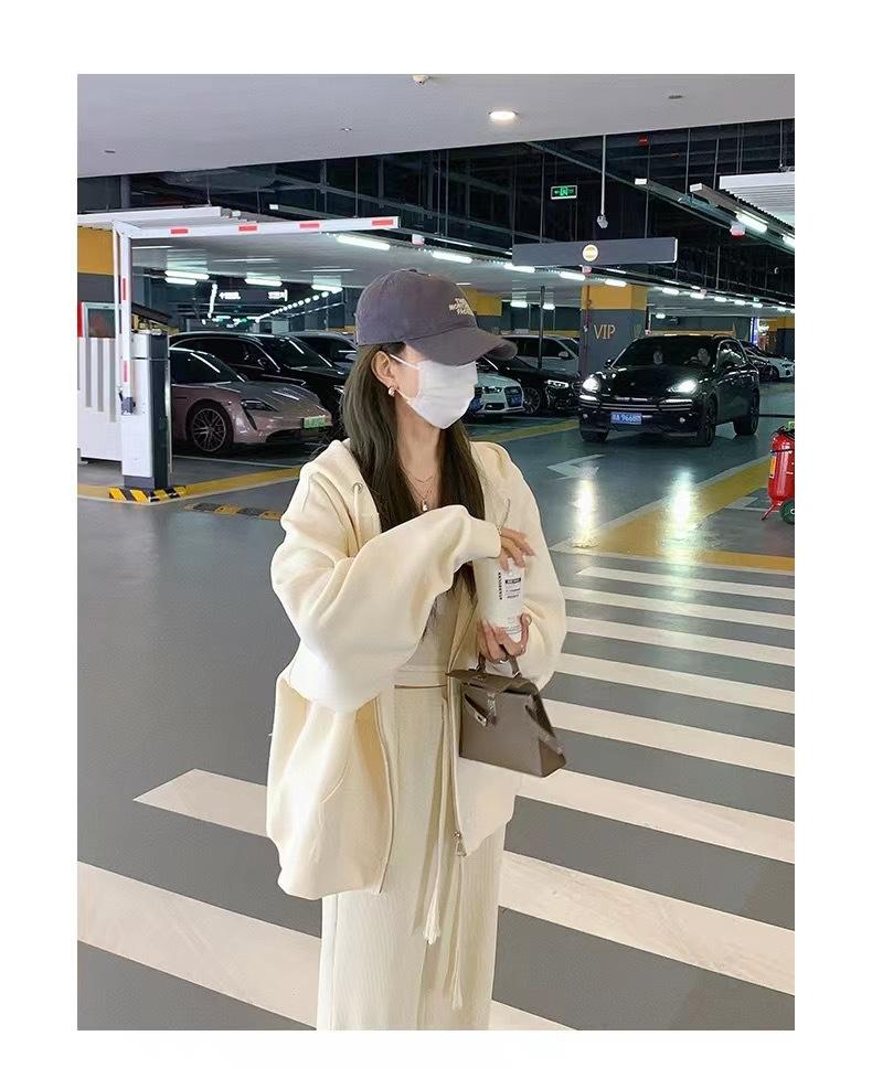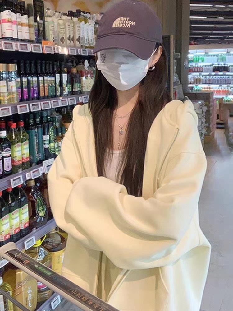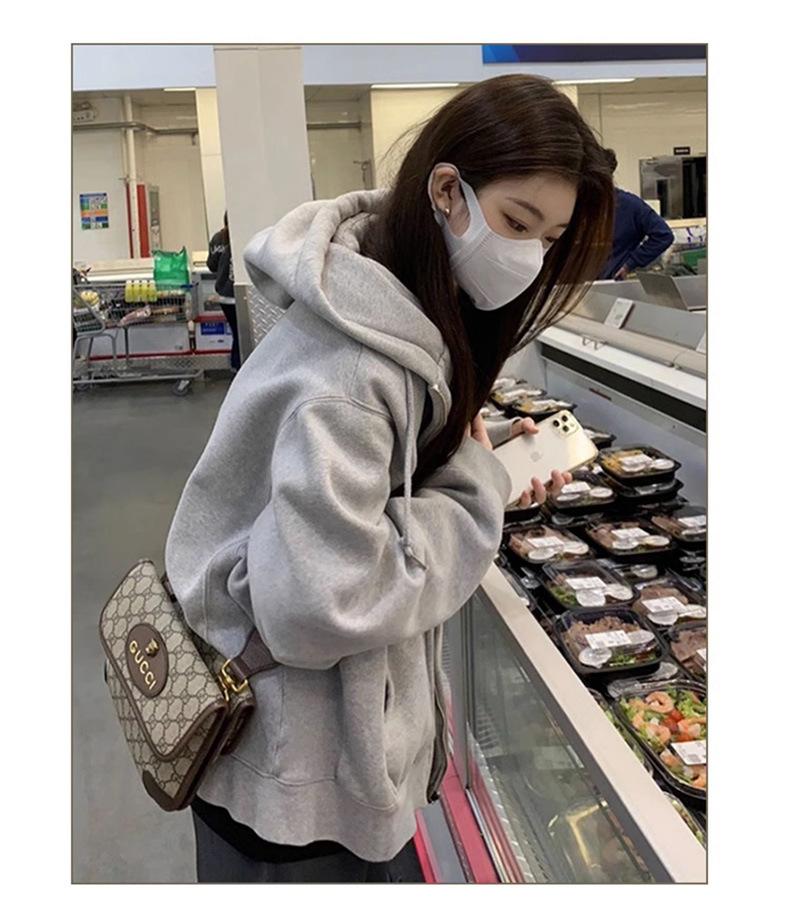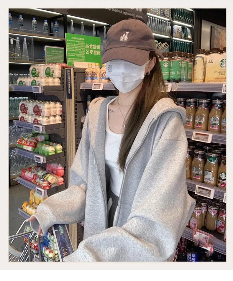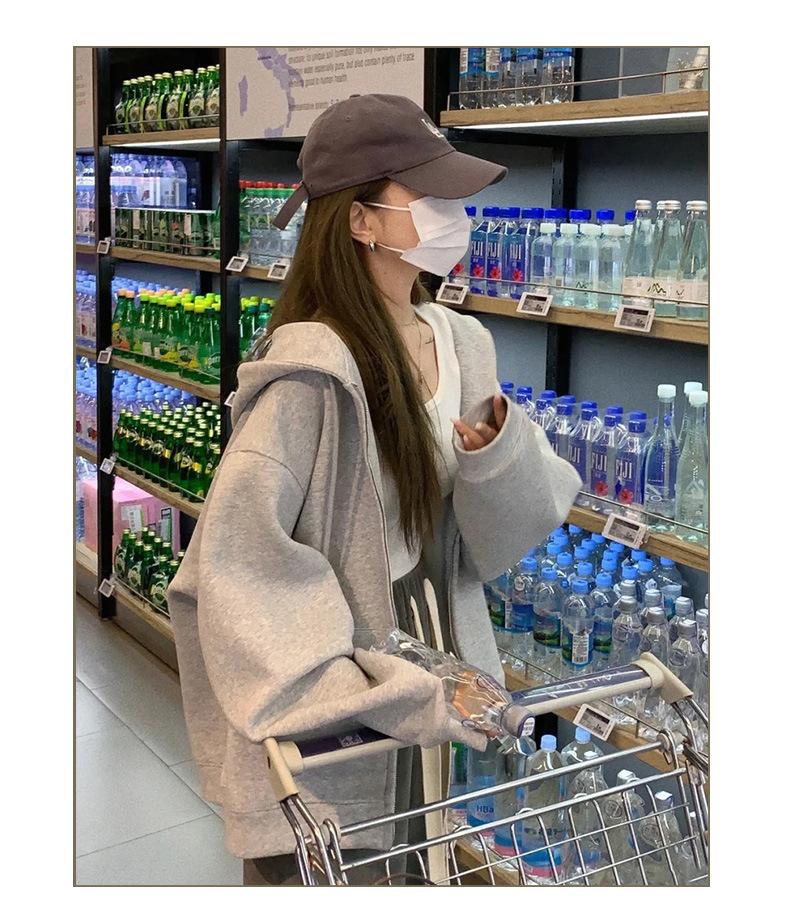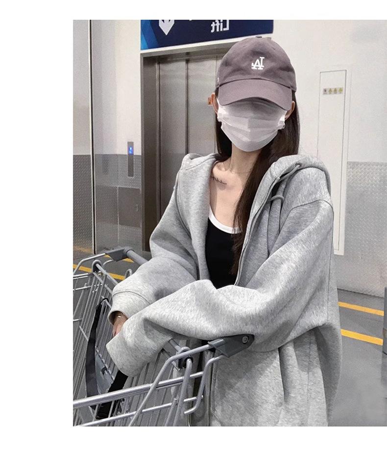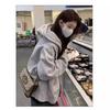 Outono e inverno versátil branco cinza suéter feminino primavera e outono estilo coreano solto BF Harajuku estilo zíper com capuz casaco casual moderno