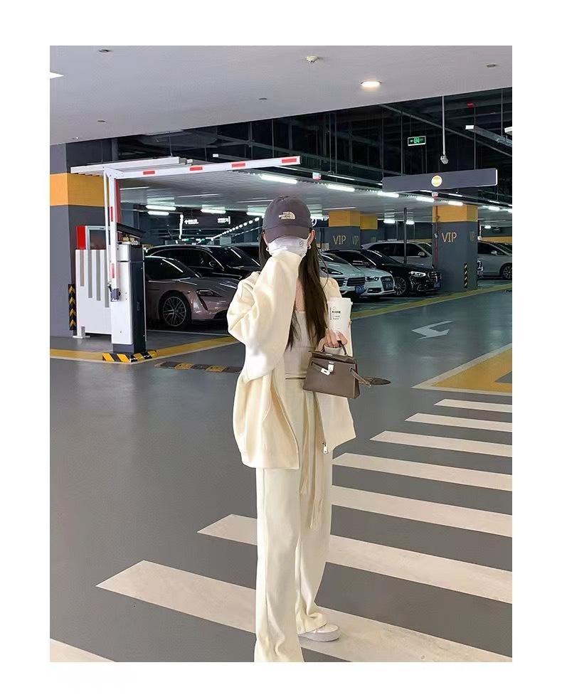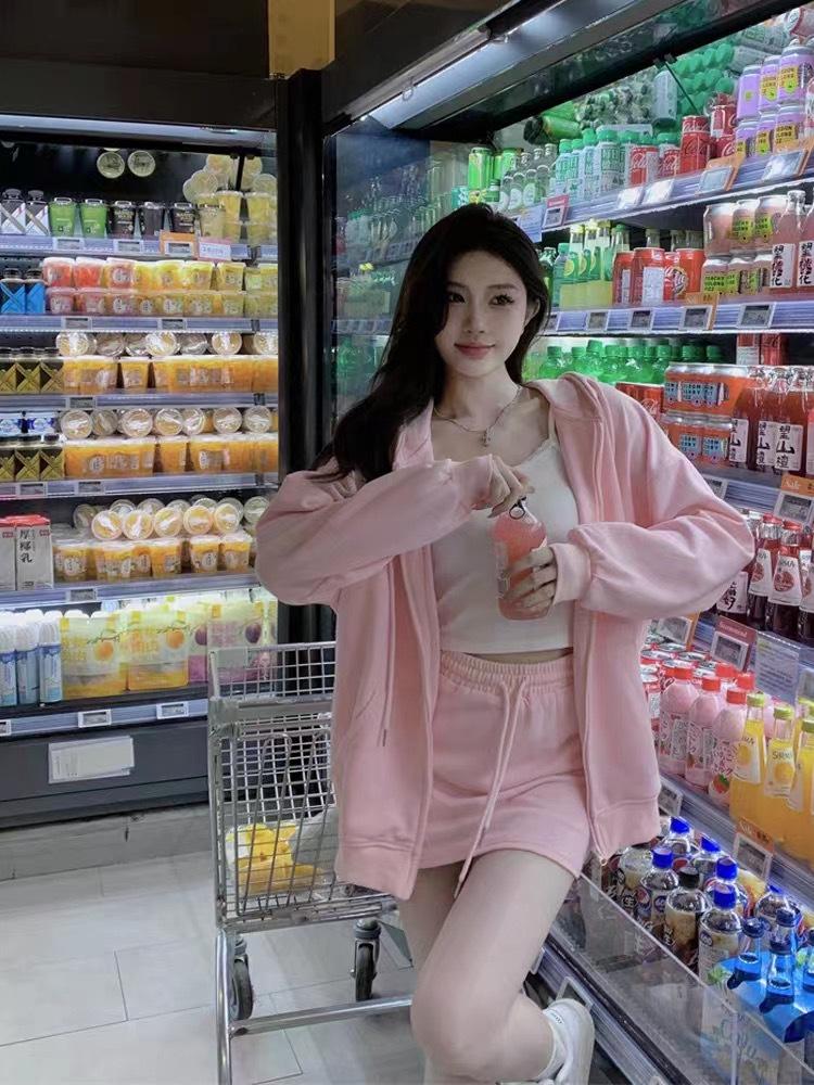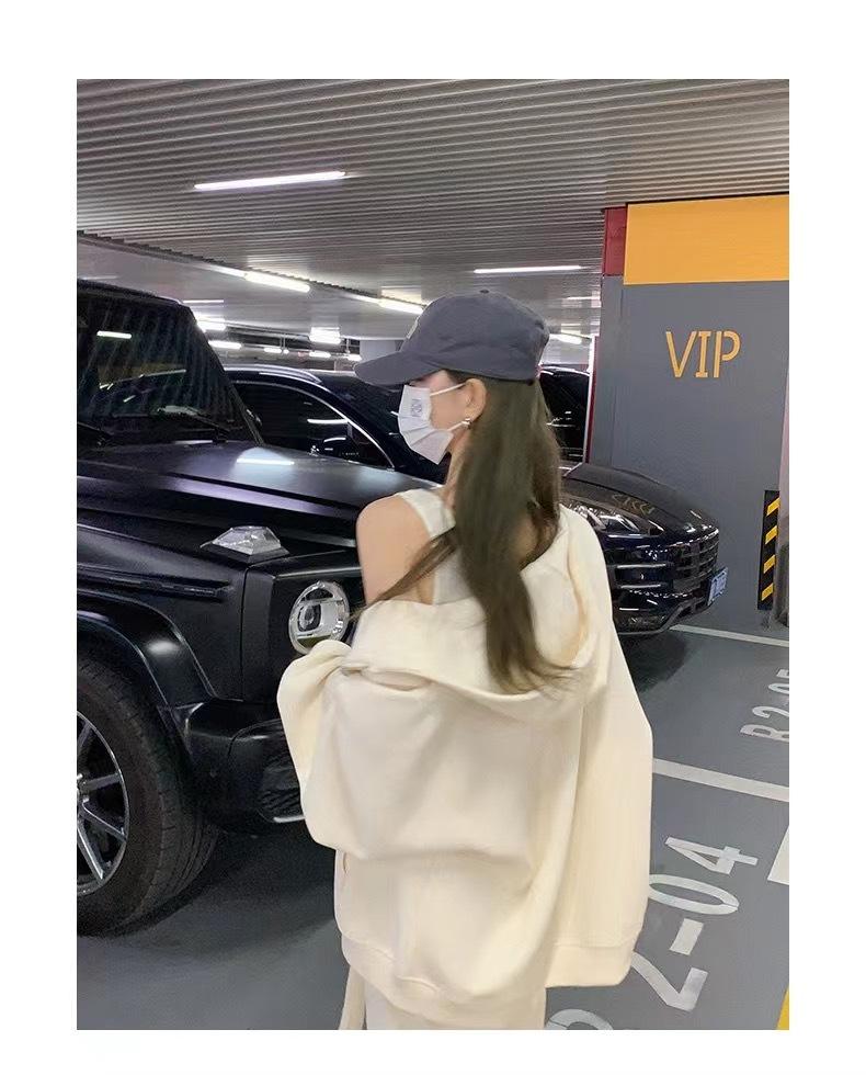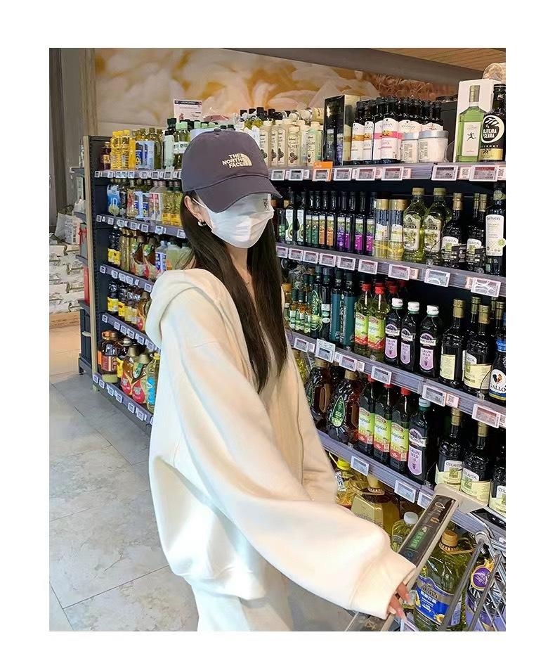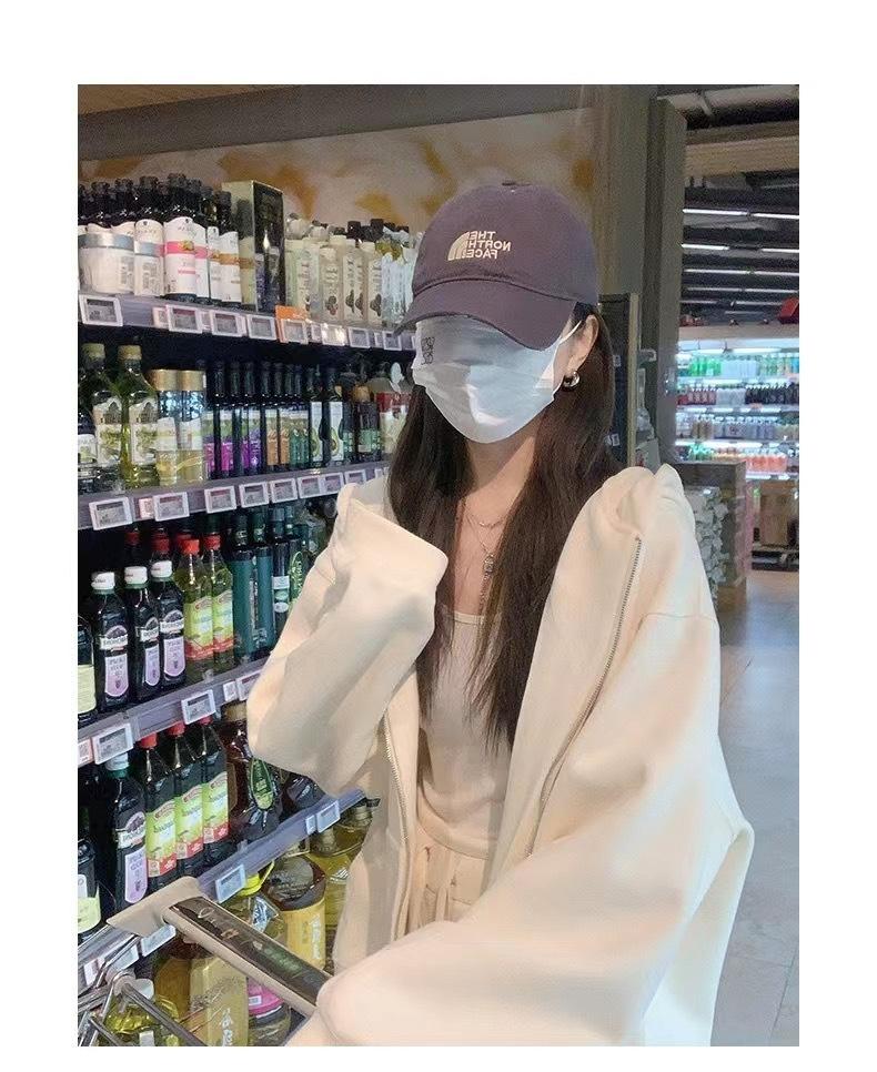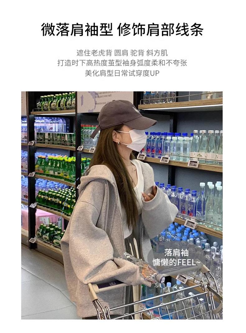 Outono e inverno versátil branco cinza suéter feminino primavera e outono estilo coreano solto BF Harajuku estilo zíper com capuz casaco casual moderno