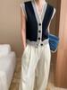 Sinan Início do Outono Novo Francês High-End Listrado Color-Blocked Decote V Colete Tricotado Versátil Sobreposição Sn7145