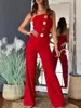 Comércio exterior Amazon Europa e América Cross-border plus size feminino Ins perna larga cor sólida decote em V manga curta simples moda macacão