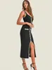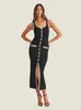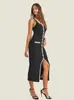 Vestido estilo socialite europeu e americano de verão, sexy, garota gostosa, slim fit, botão, design dividido, bolsa, saia quadril